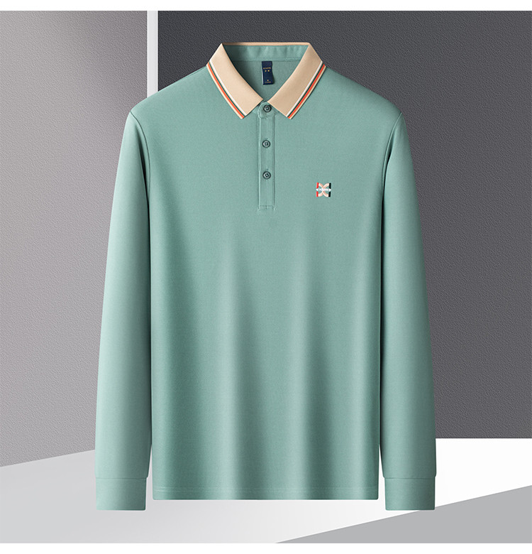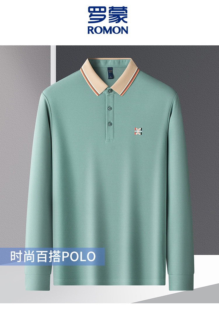 【绣花胸标】罗蒙春秋男士仿丝光polo衫男长袖t恤男商务男士polo衫