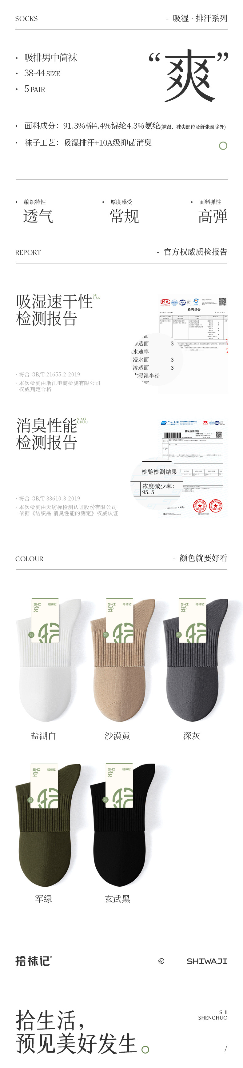 【品名】拾袜记春夏吸湿排汗袜 【规格】6双装 【尺码】 女款均码:34-39 码 男款均码:38-44 码 【材质】 (袜底)91.3%棉,4.4%锦纶,4.3%氨纶(袜跟、袜尖部位及舒张圈除外) 【产地】浙江诸暨 【发货地】浙江诸暨 【发货快递】韵达申通随机发,偏远地区ems 【不发货区域】港澳台地区不发 【发货时效】48小时,节假日顺延 |