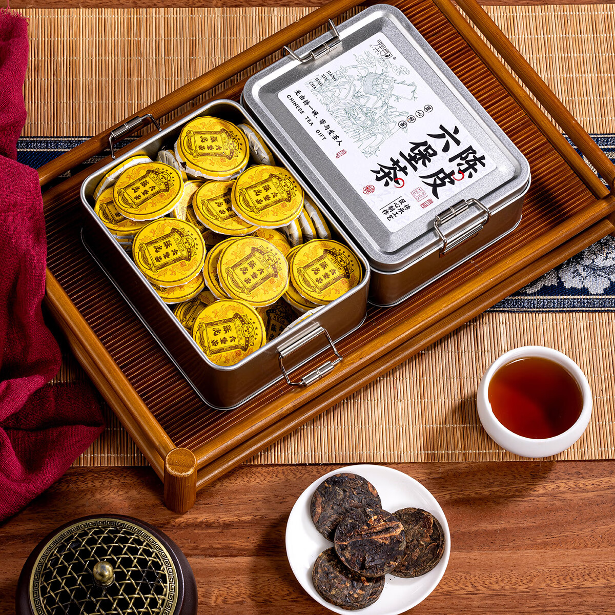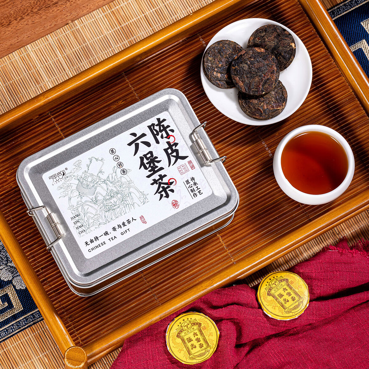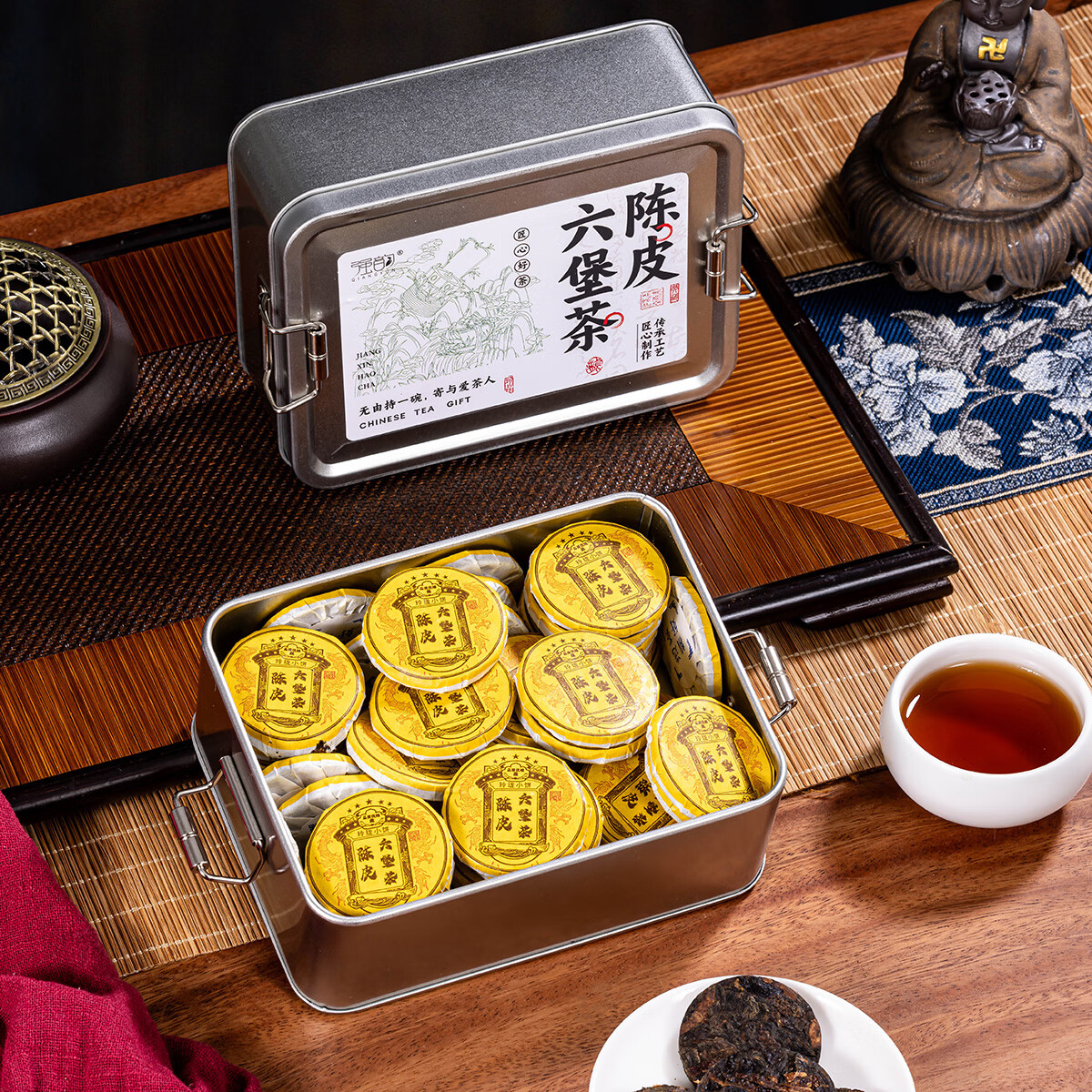 热卖!清爽解腻! 强韵陈皮六堡茶250g*1盒独立包装小圆饼整盒自饮礼赠佳品