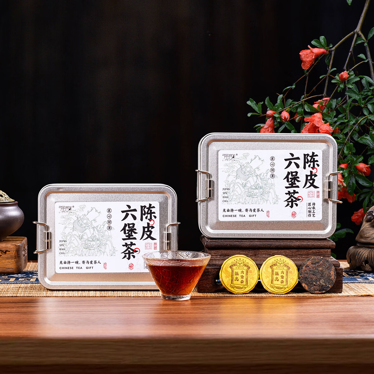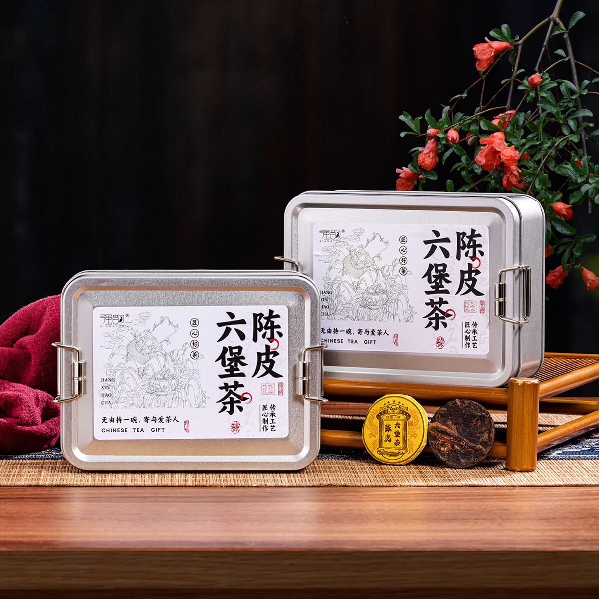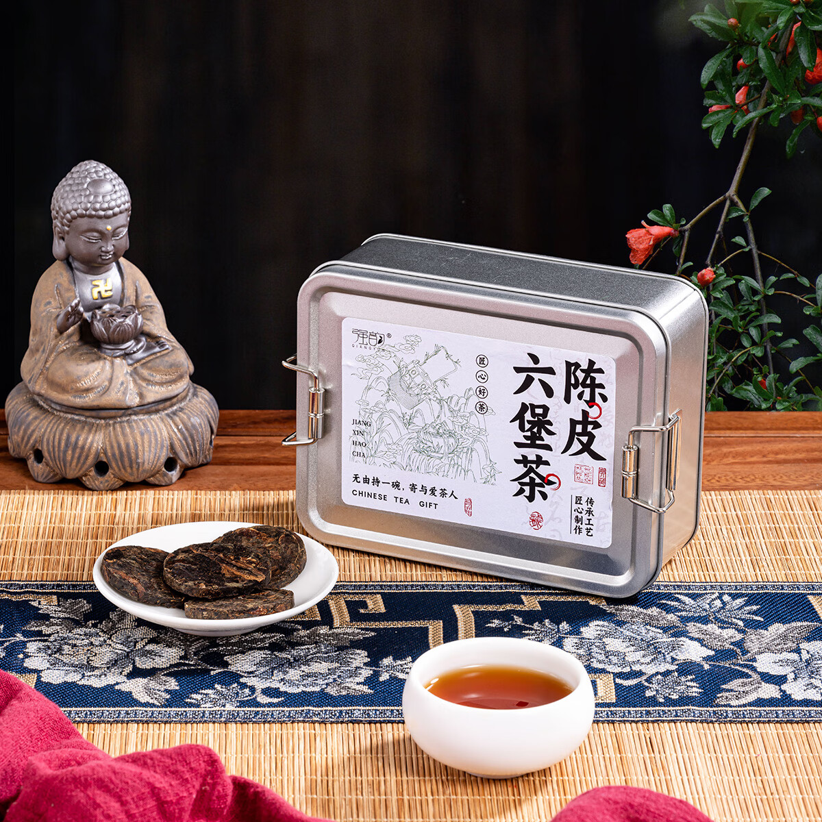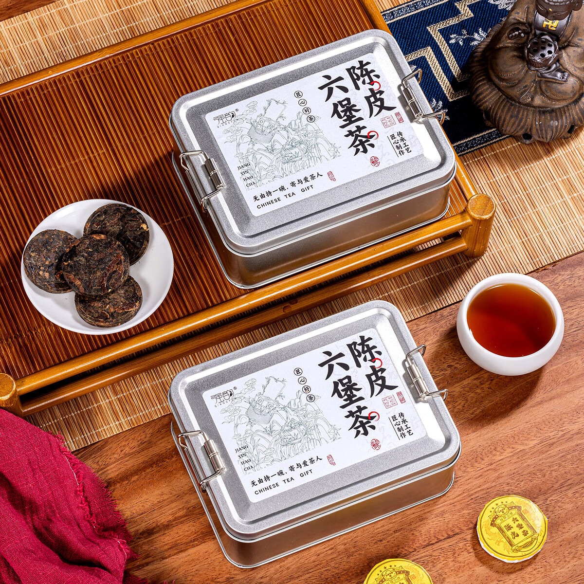 热卖!清爽解腻! 强韵陈皮六堡茶250g*1盒独立包装小圆饼整盒自饮礼赠佳品