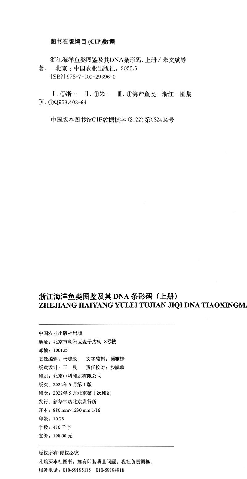 浙江海洋鱼类图鉴及其DNA条形码(上册) 朱文斌等 中国渔业 浙江省 水产品 咸水鱼 29396