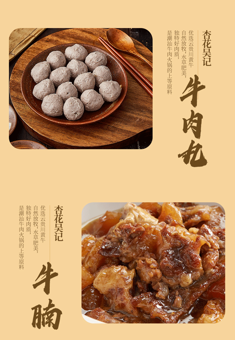 【品名】杏花吴记潮汕牛肉火锅套餐 【规格】 1.鲜切牛肉(各100g):匙仁、嫩肉、吊龙、肥牛、卤牛腩 2.汤底&配料:清汤包(400gx1包) 3.丸类:汕头牛肉丸(150g)8颗 4.主食:粿条(200gx2包) 5.蘸料套装:沙茶酱(200gx1瓶) 6.礼袋一个 【保质期】鲜切牛肉:1个月,丸类+主食:1年 【储存方法】需冷冻贮存(-18℃以下),避免反复解冻 【食用方法】 【产地】广东汕头 【发货地】广东汕头 【发货快递】顺丰 【不发货区域】新疆,西藏,港澳台地区不发 【补邮费地区】青海,内蒙古,宁夏,甘肃,黑龙江,吉林,辽宁+30元 【发货时效】48小时,节假日顺延 |