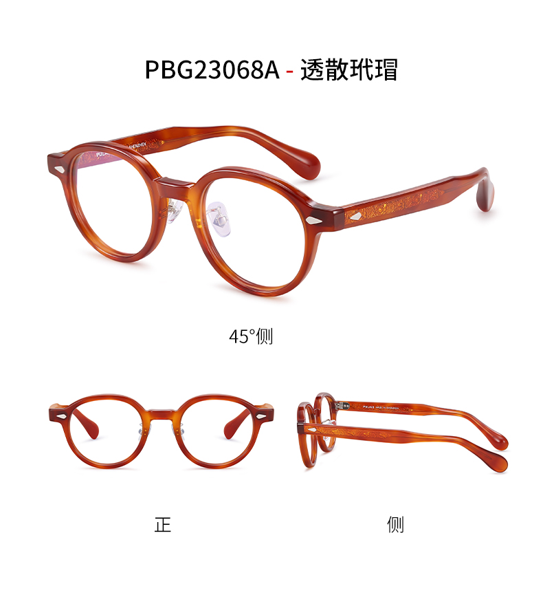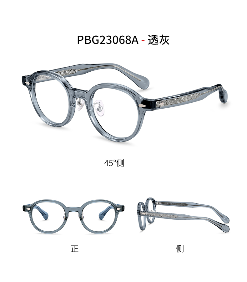 普莱斯光学镜框PBG23068A 轻奢复古风 雕花镜腿 白铜+板材 男女同款