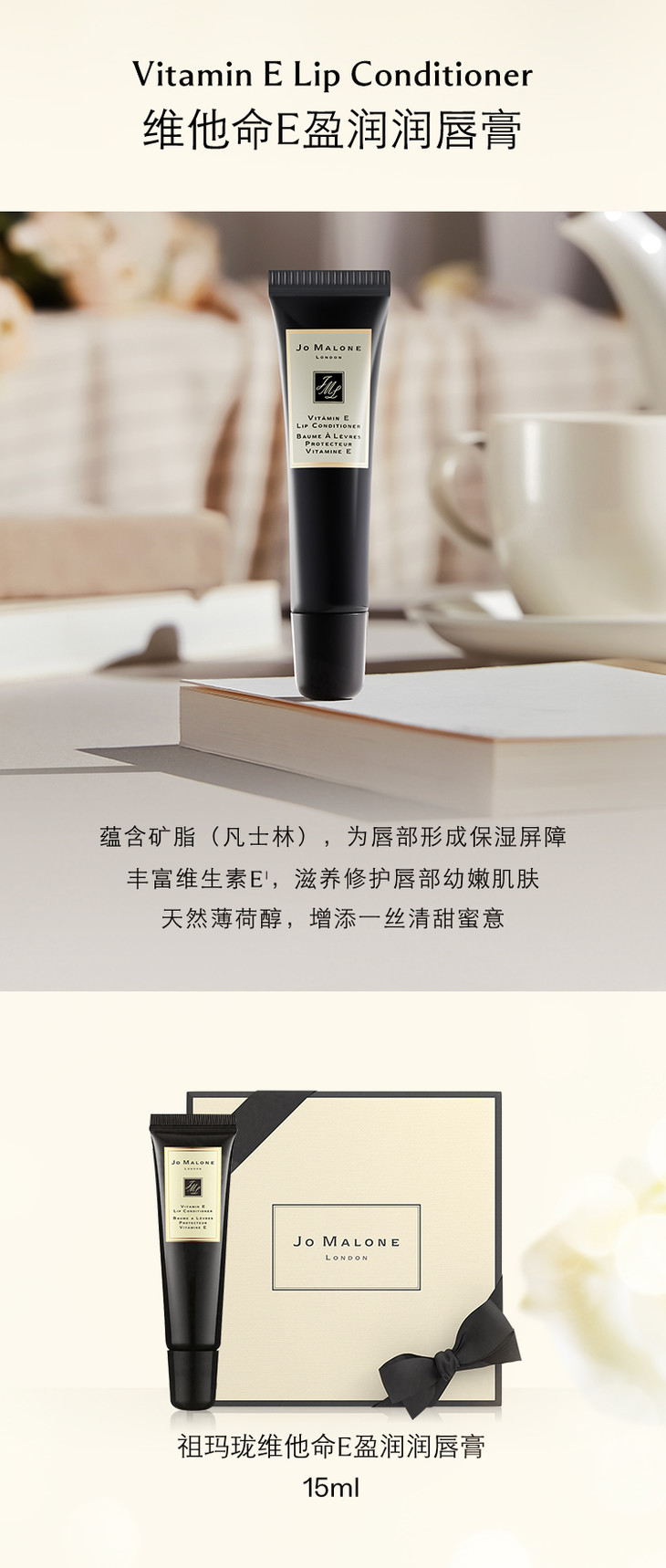 【1.3 大牌再降价】Jo Malone祖玛珑祖马龙VE润唇膏保湿补水维他命E修复唇部15ml