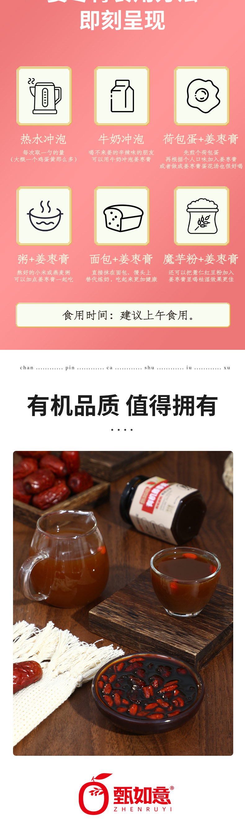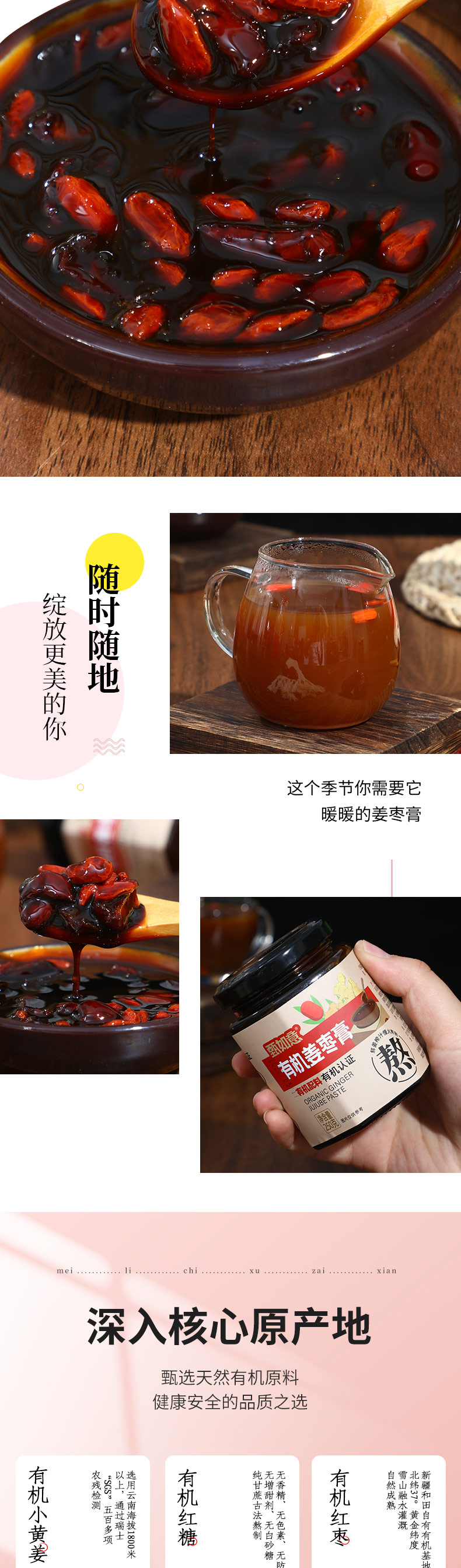 【有机姜枣膏】100%有机原料,22年专注姜枣膏熬制,3斤姜出1斤8两姜汁,鲜姜汁无水慢熬,每一滴浓缩提供恰到好处!