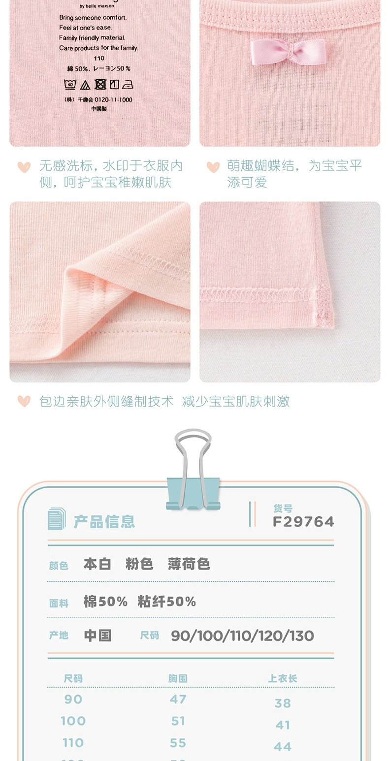 千趣会春夏夏中小童装打底纯色纯棉女童宝宝吊带衫内衣2件装