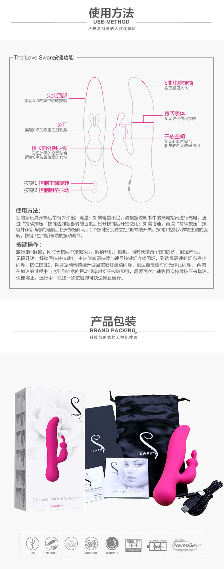 加拿大Swan Love真爱天鹅 双点旋转充电式女用私处高端静音防水情趣用品成人震动棒