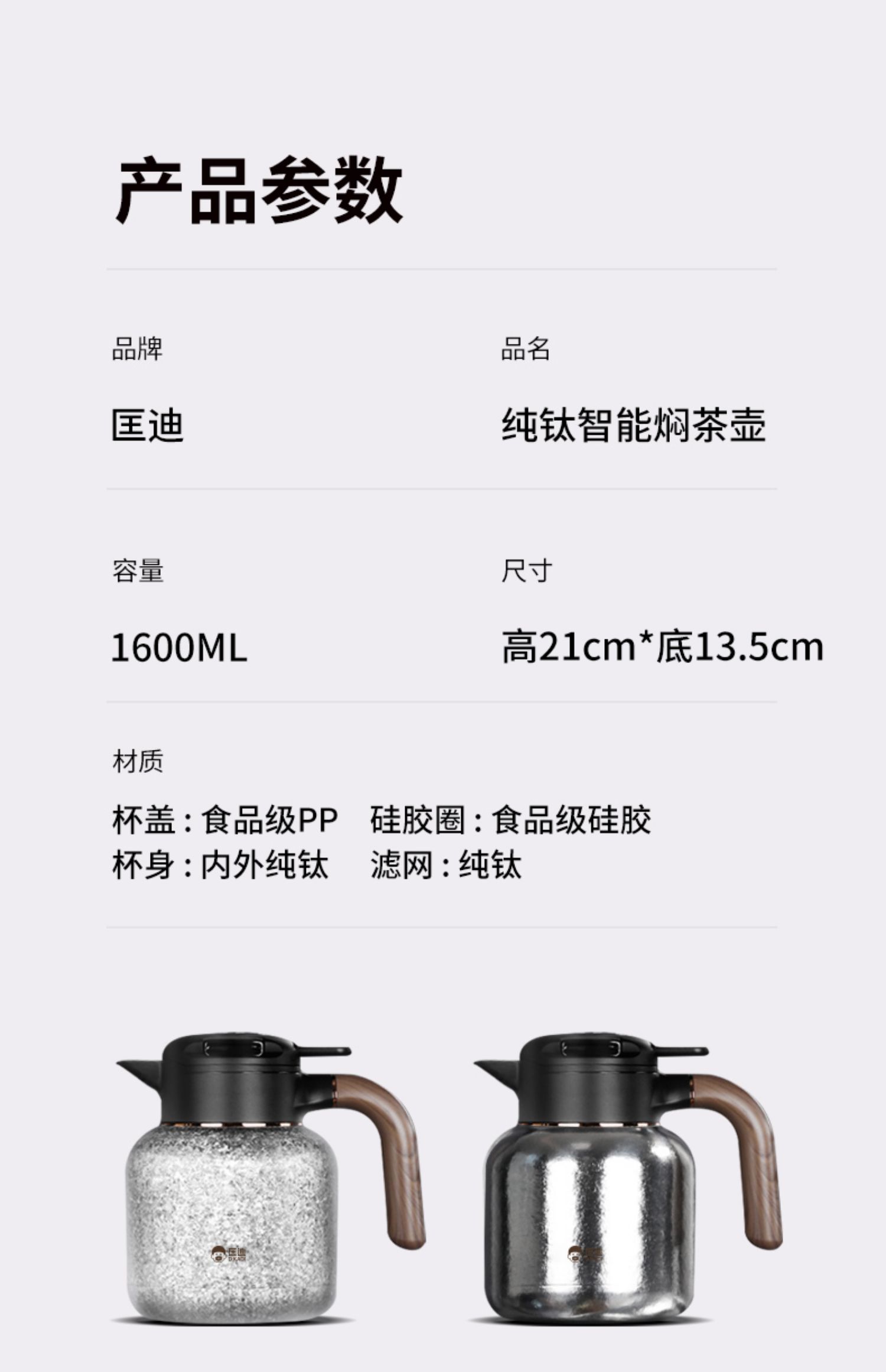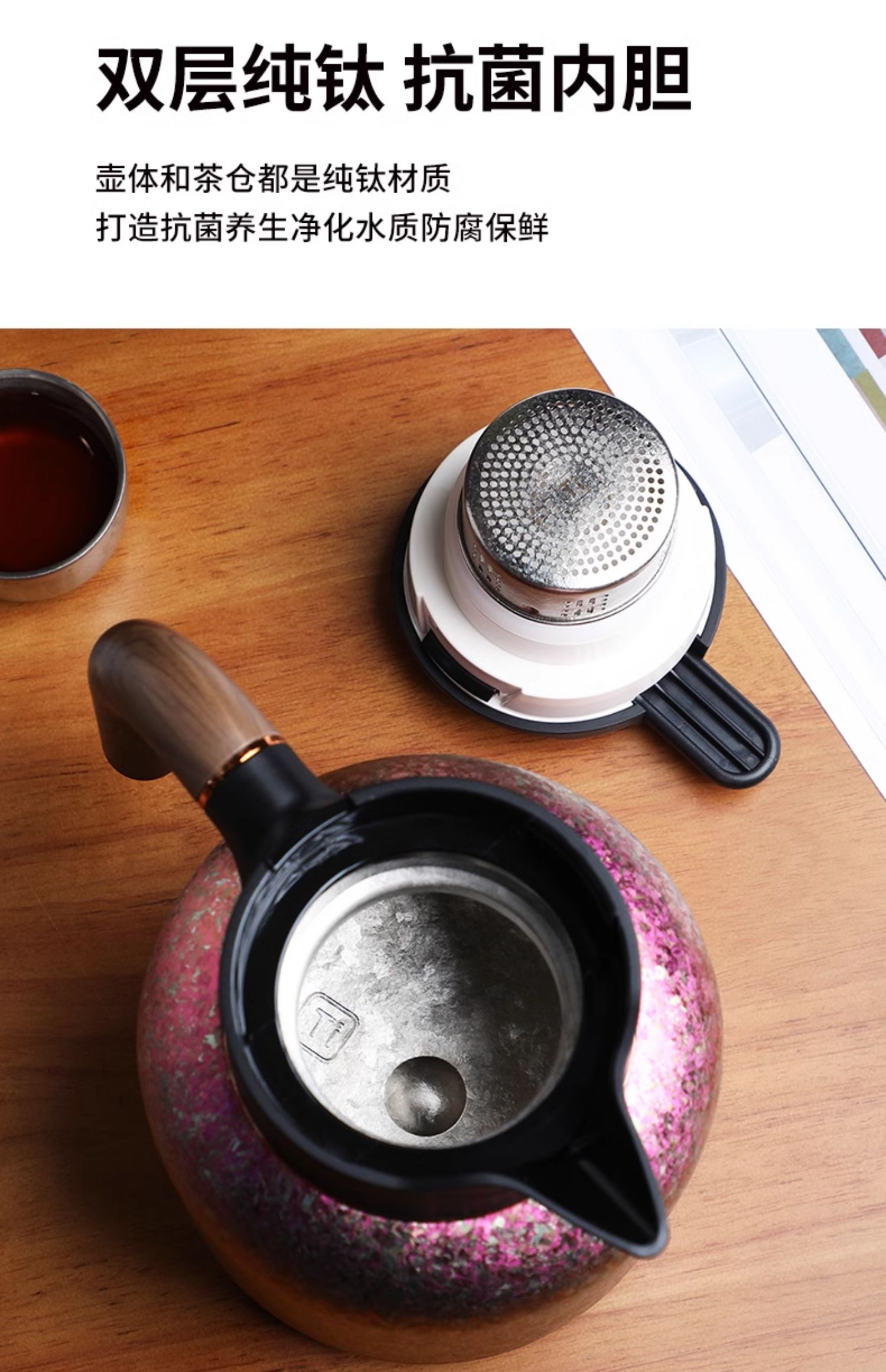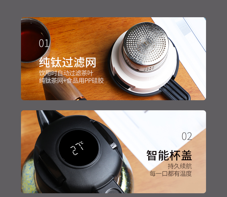【纯钛显温闷茶壶】匡迪钛壶高档纯钛焖茶壶大容量智能温显保温壶家用养生闷泡茶水壶