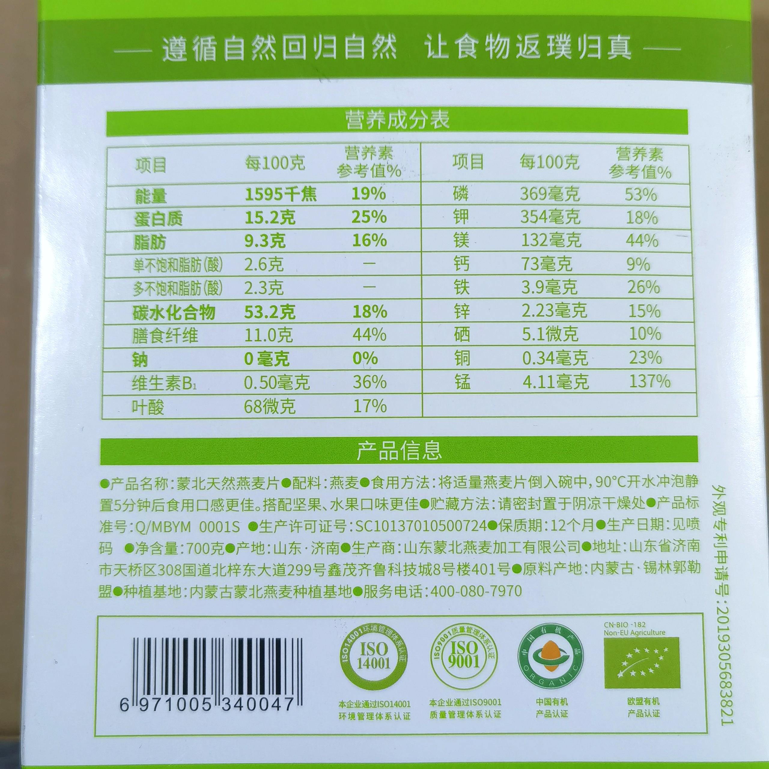 蒙北天然燕麦片 冲泡即食700g/瓶装【京东快递送货上门】