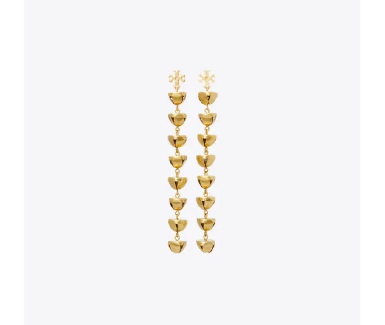 TORY BURCH 汤丽柏琦 双T LOGO吊坠耳环 165323,铃铛线型耳环精选黄铜制成。小铃铛轻轻摇曳,更添灵动之美。既可单独佩戴,也可与同款项链搭配,契合节日的欢快氛围。适合有耳洞者佩戴。