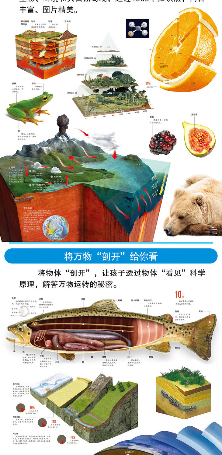 本书知识涵盖天文、火山、地震、气候、生态、生物、环境和大自然奇观,超过1000个知识点,内容丰富、图片精美。