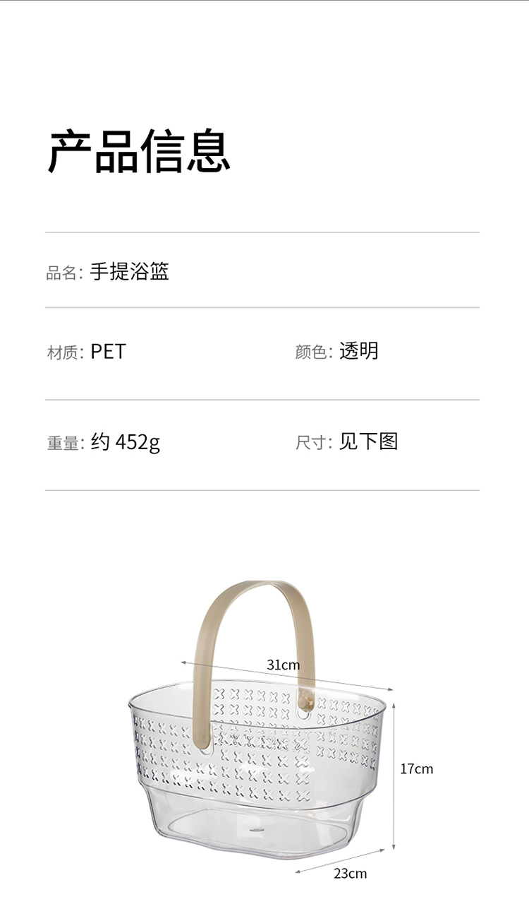 FaSoLa洗澡提篮手提浴筐浴室洗漱用品置物篮镂空沥水洗漱筐塑料洗浴篮
