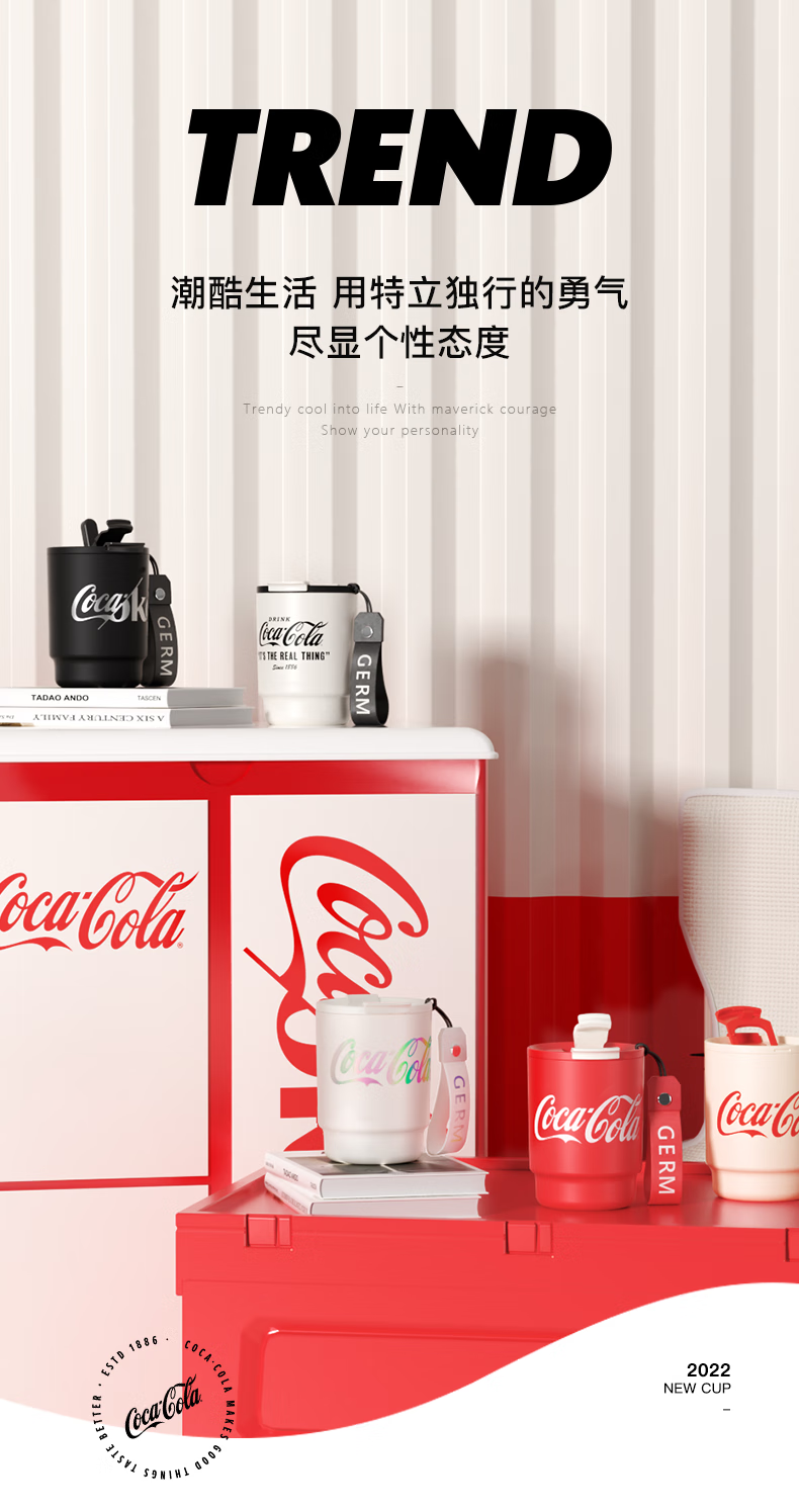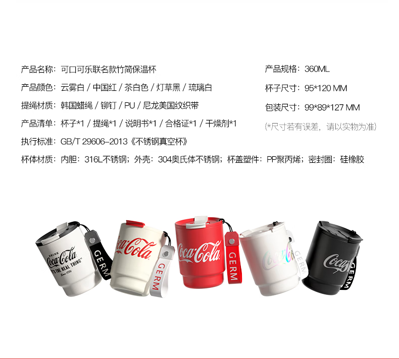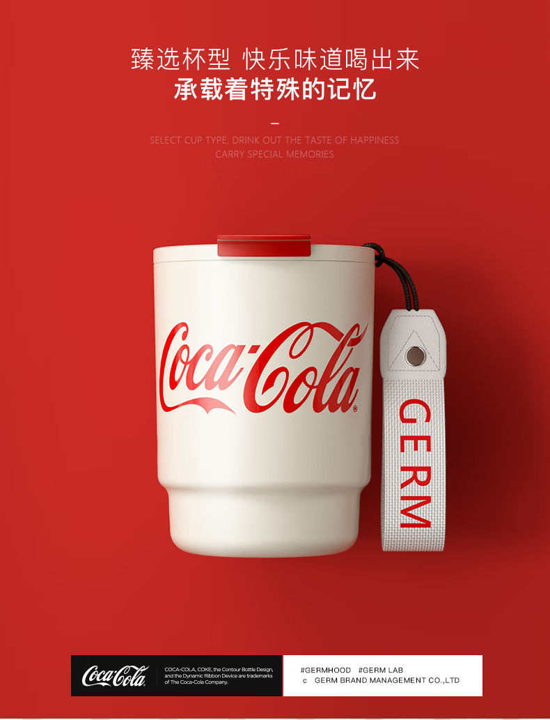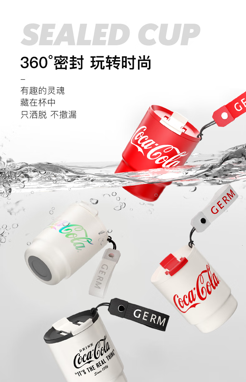 【小家电】格沵(germ) 可口可乐联名水杯咖啡杯大容量双饮车载杯子竹简款保温杯 360ML HF