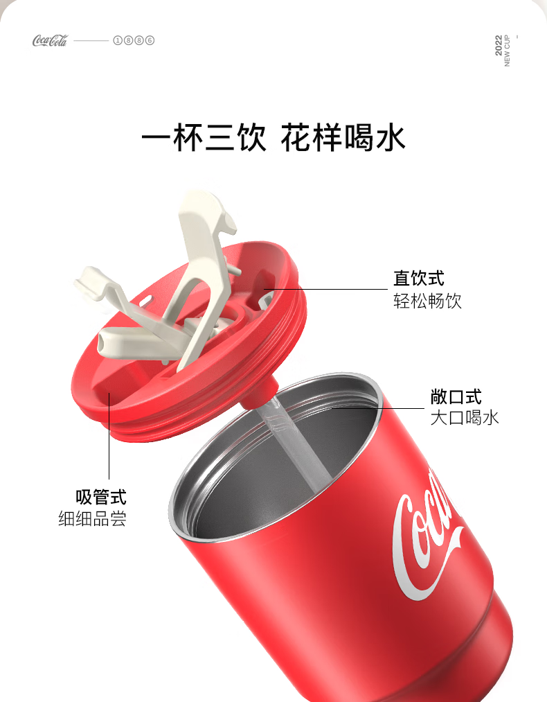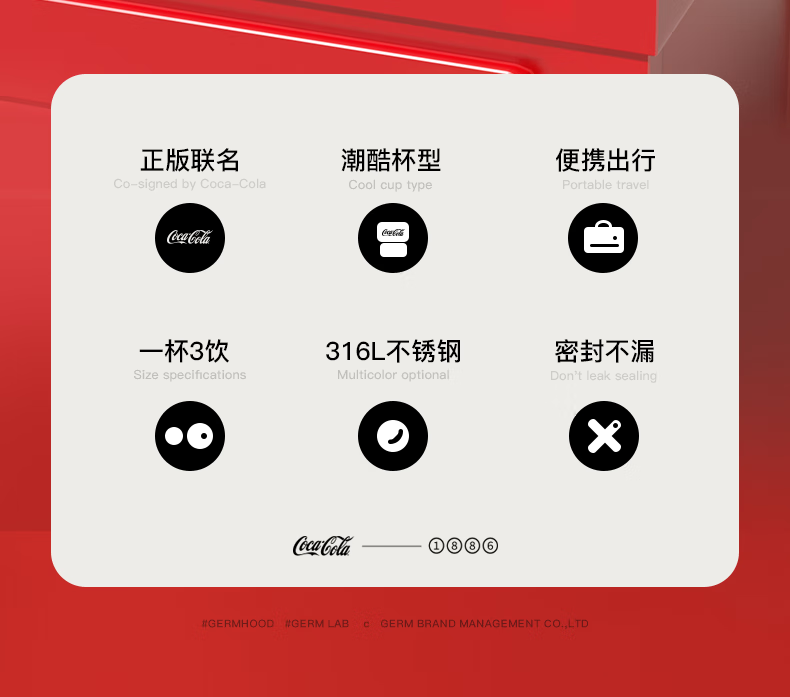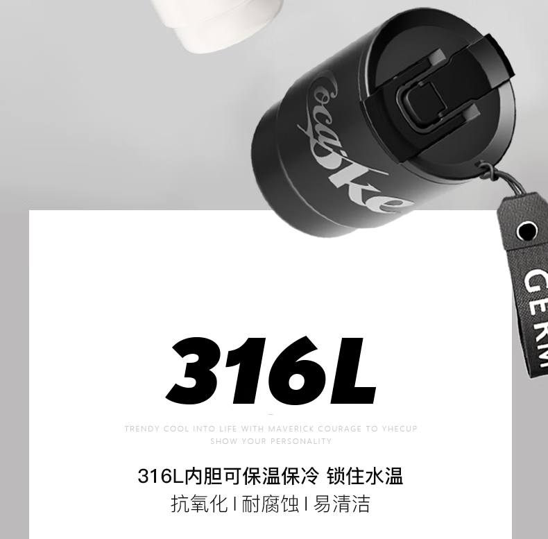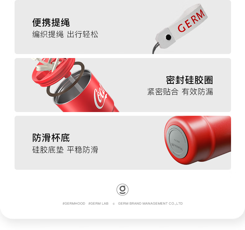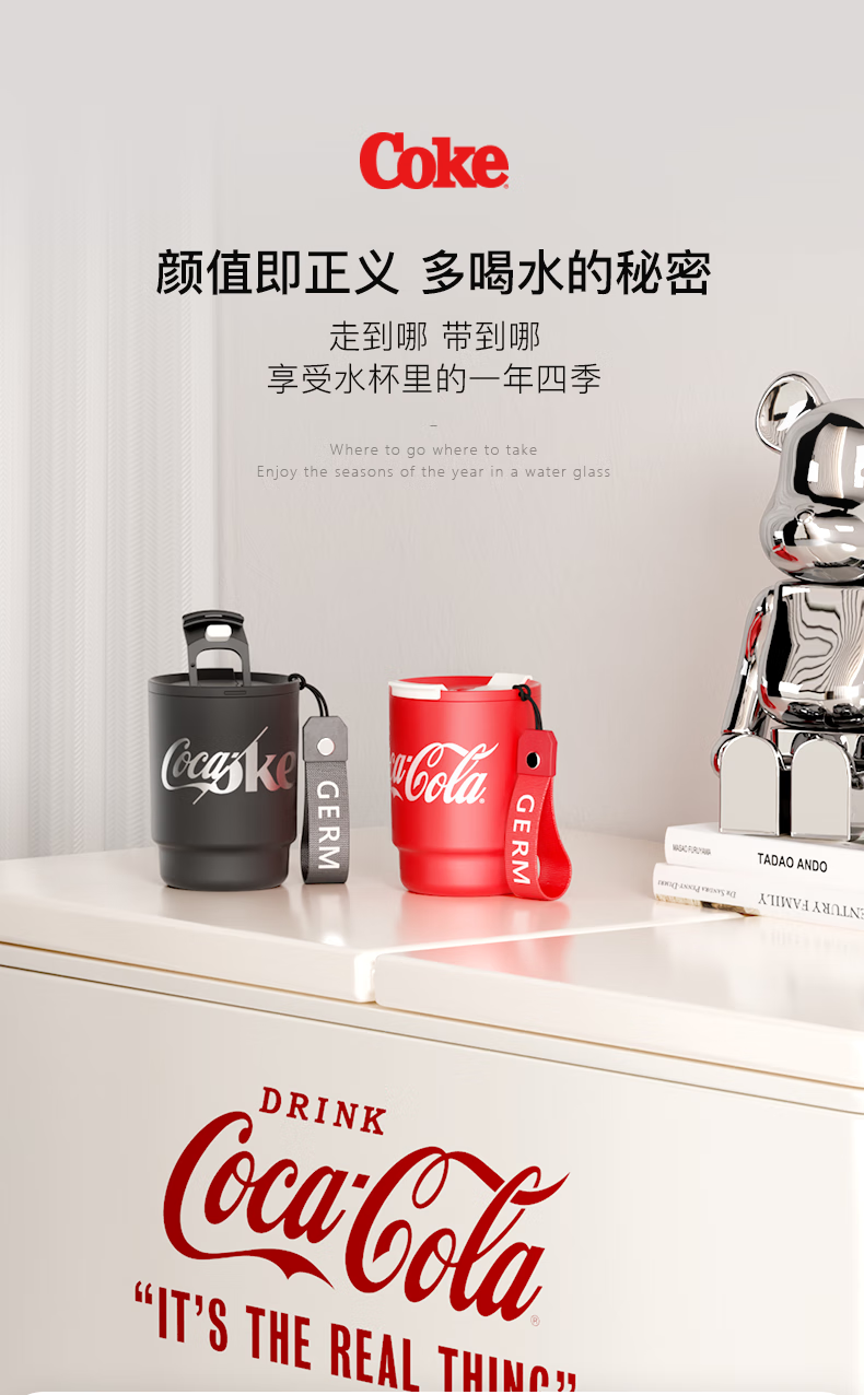 【小家电】格沵(germ) 可口可乐联名水杯咖啡杯大容量双饮车载杯子竹简款保温杯 360ML HF