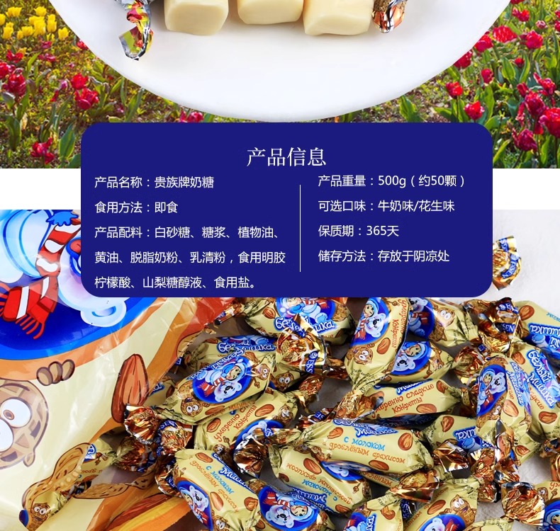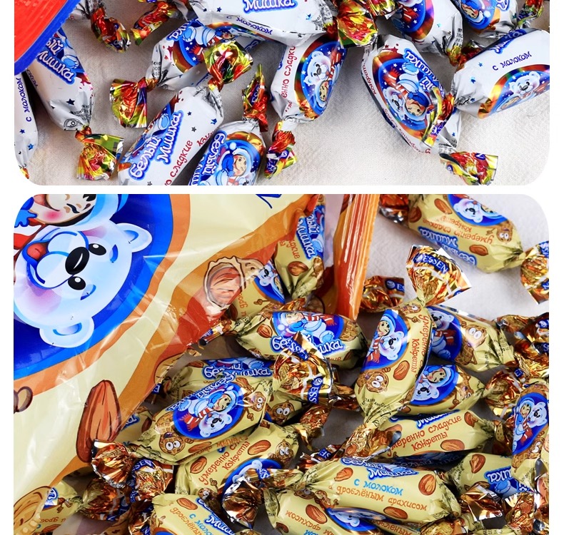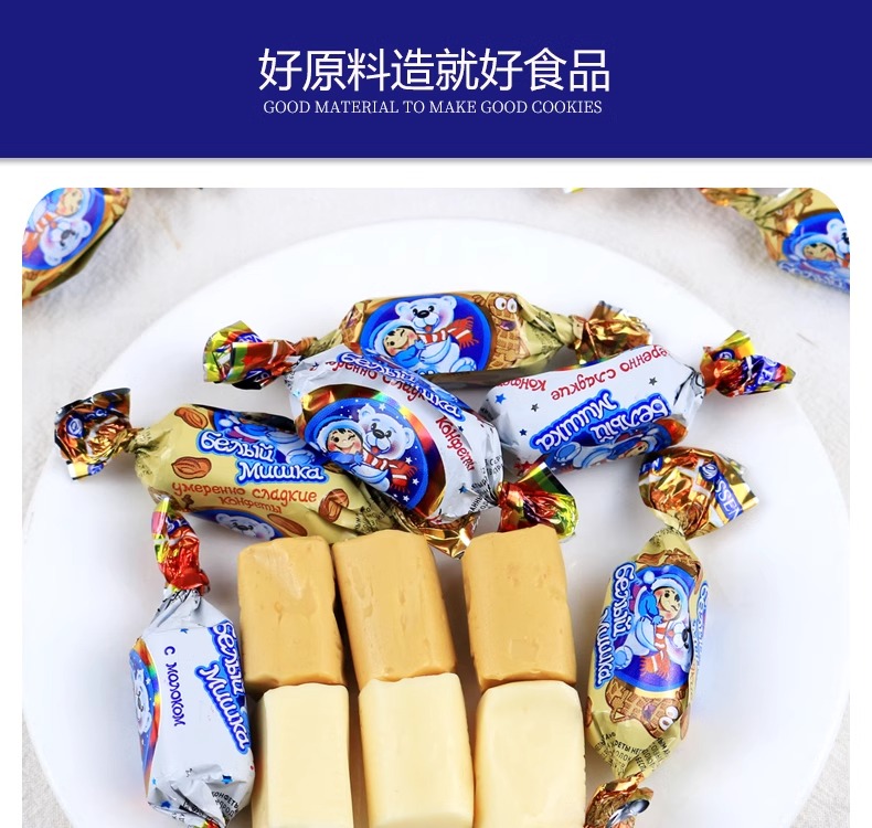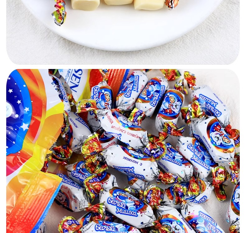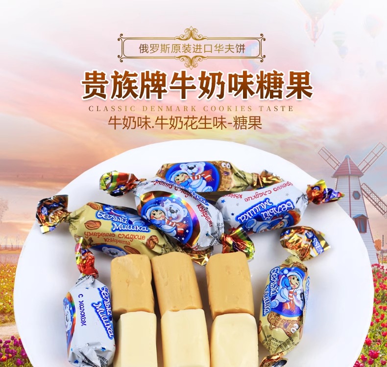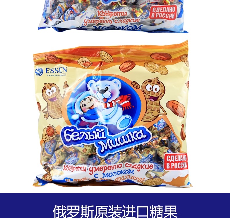 【中欧班列精选】俄罗斯进口ESSEN贵族白熊奶糖/花生夹心奶糖500g/包APX