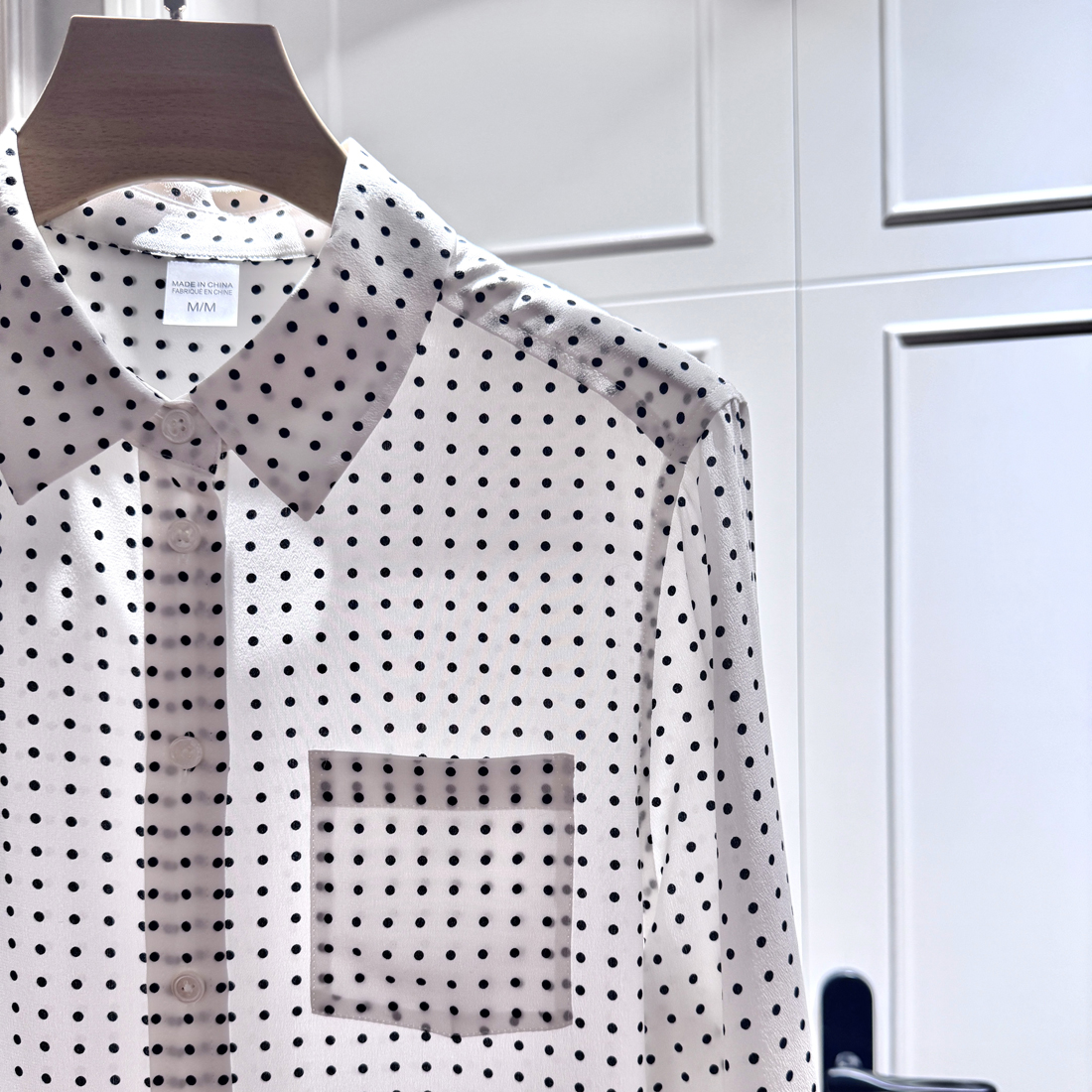 火桐hooton 小波点单口袋双绉桑蚕丝衬衫S009