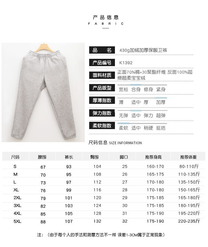 岸纾 加绒加厚经典版型保暖卫裤(多色可选)