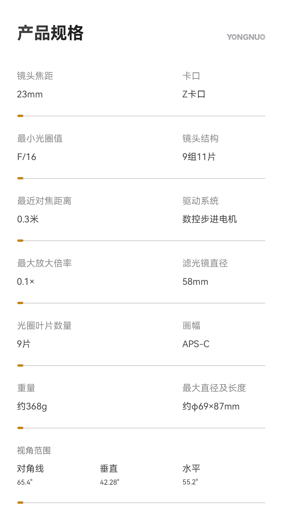 永诺23mm F1.4尼康Z卡口APS-C画幅自动对焦镜头YN23mm F1.4Z DA DSM WL PRO【顺丰包邮】