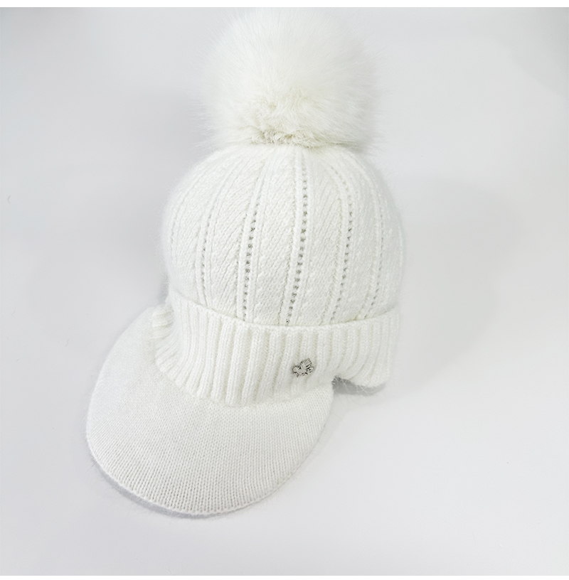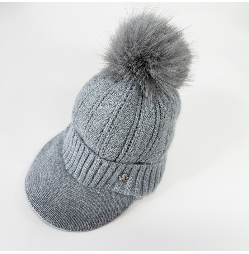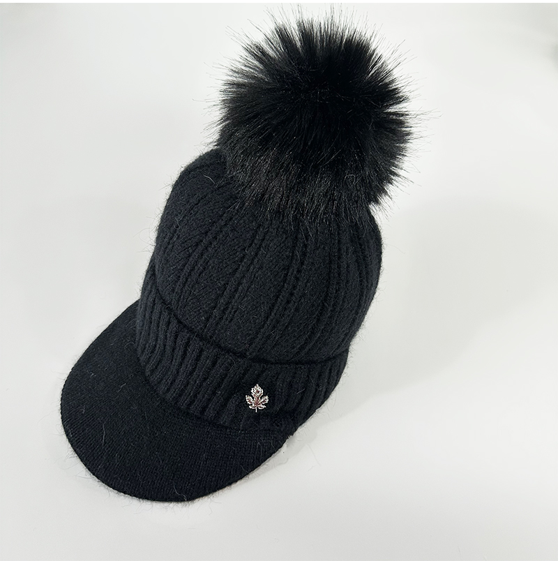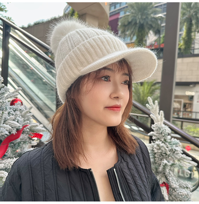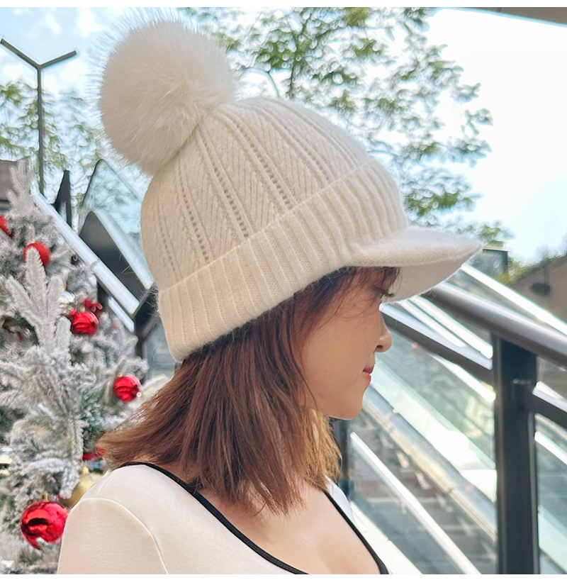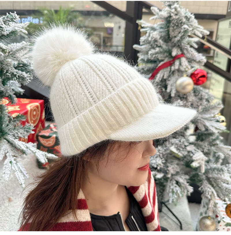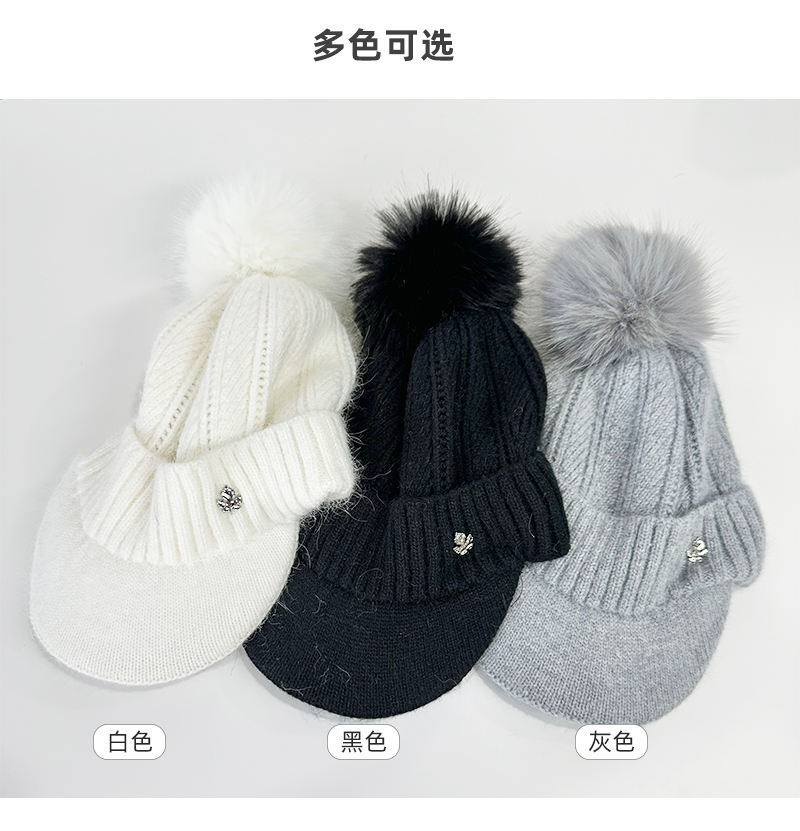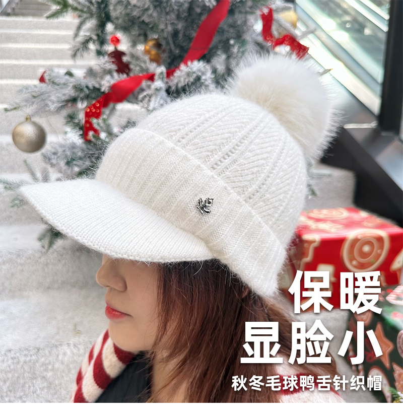 壁虎瑜伽【2512PJ471】秋冬毛球 鸭舌针织帽(5天发货)