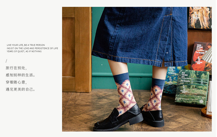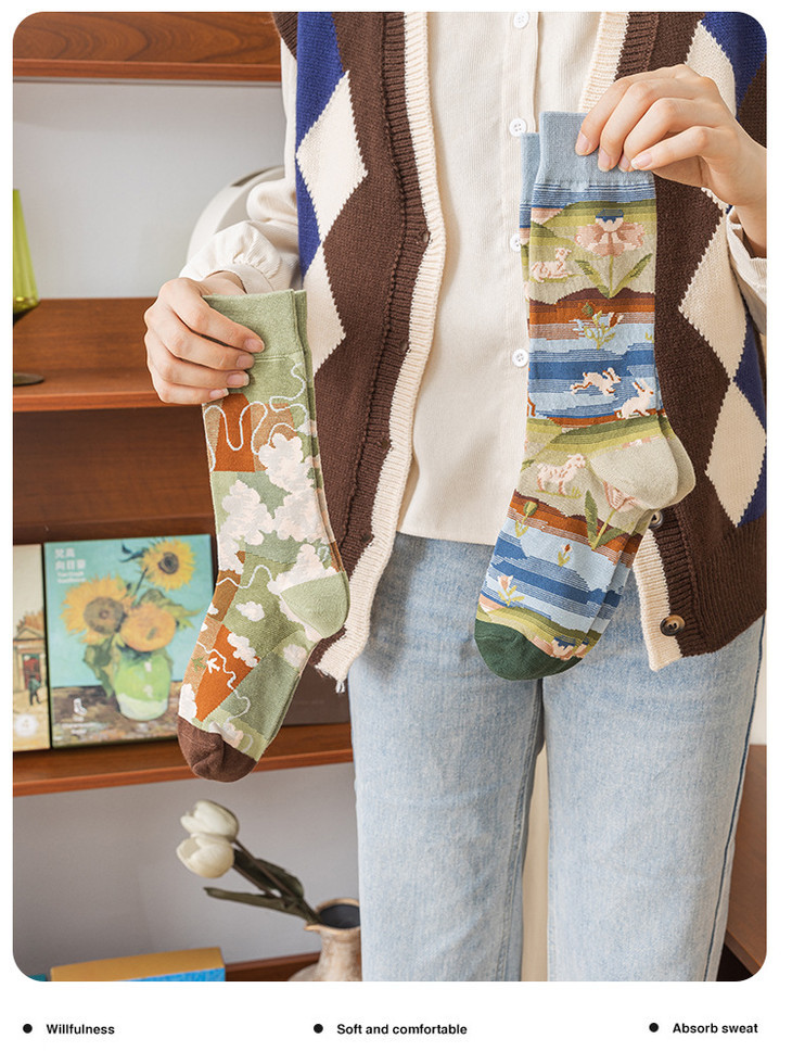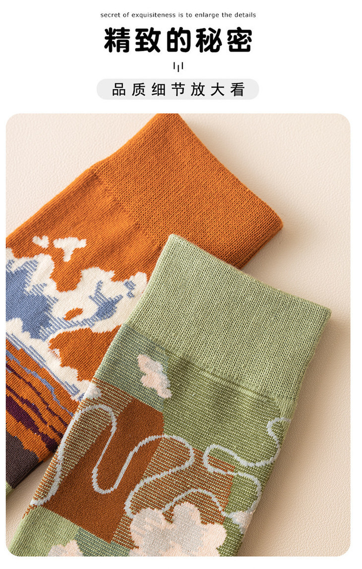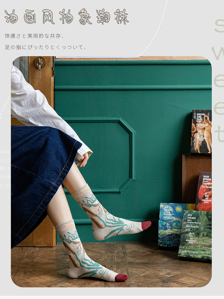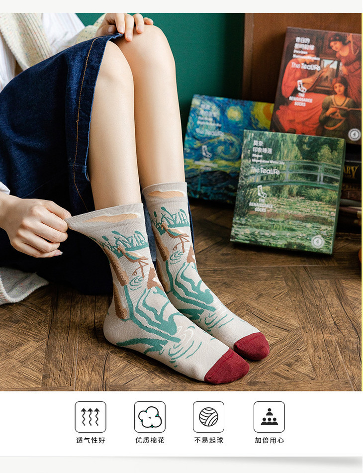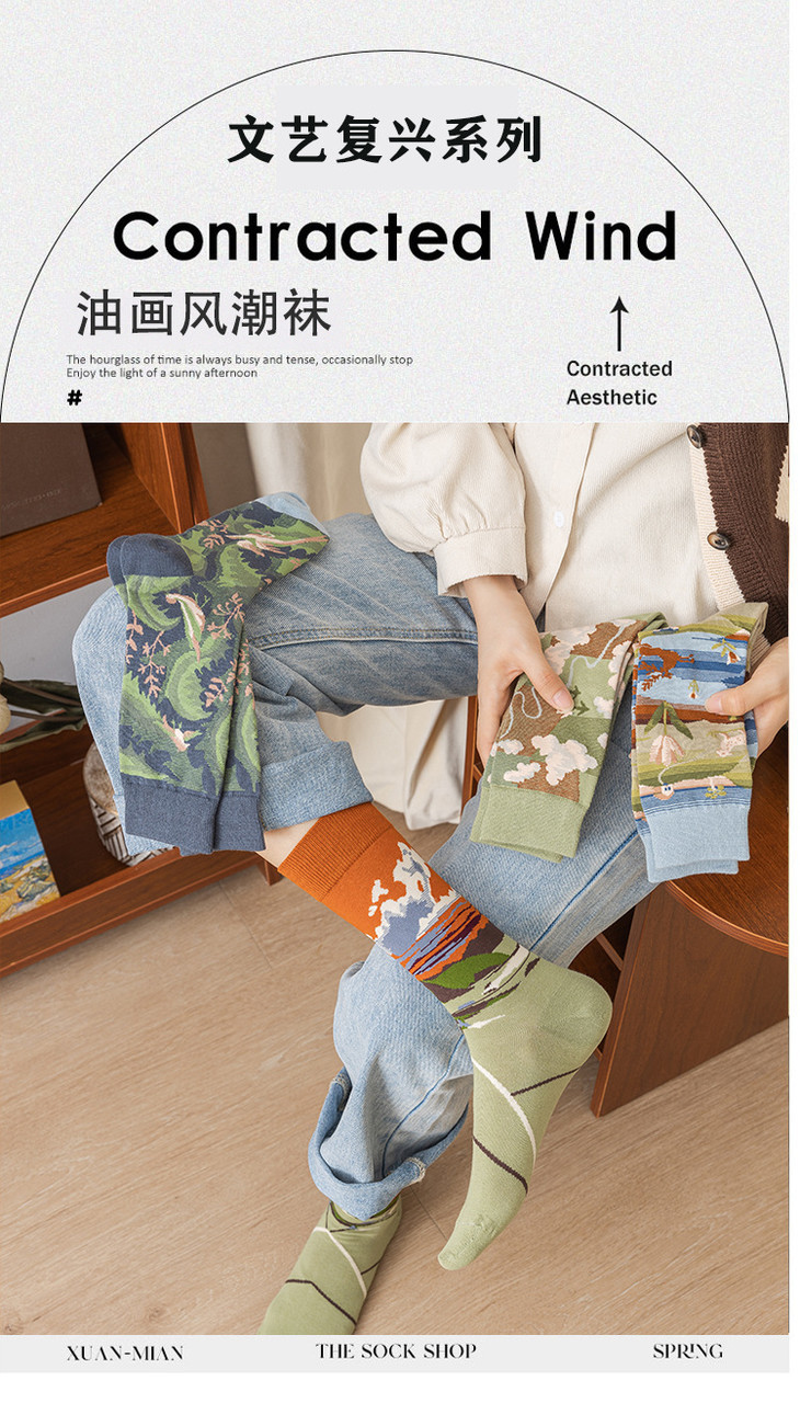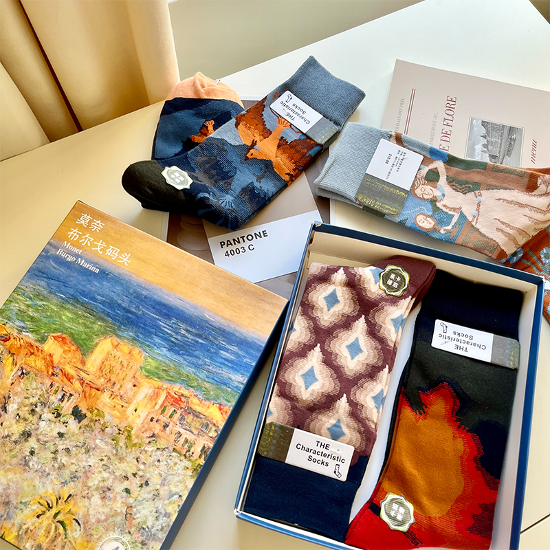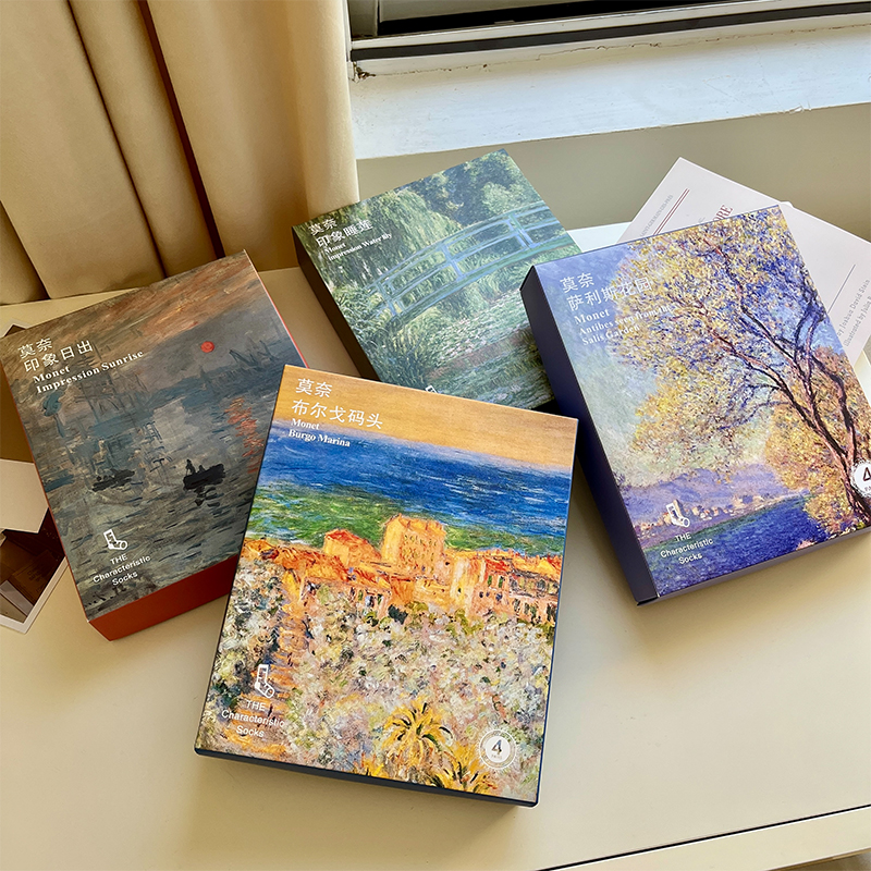 【4双礼盒装梵高II莫奈油画袜】法国轻奢II文艺复兴 莫奈&梵高新疆长绒棉油画风抽像潮袜