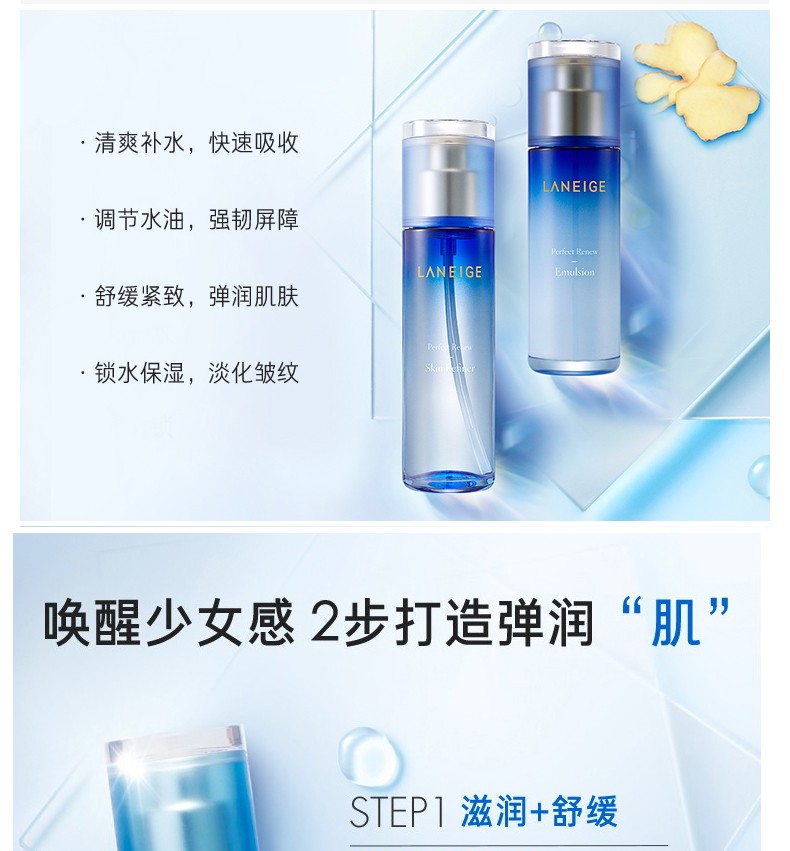 韩国 LANEIGE兰芝 雪凝新生抗皱系列 再生水乳2件套 版本随机