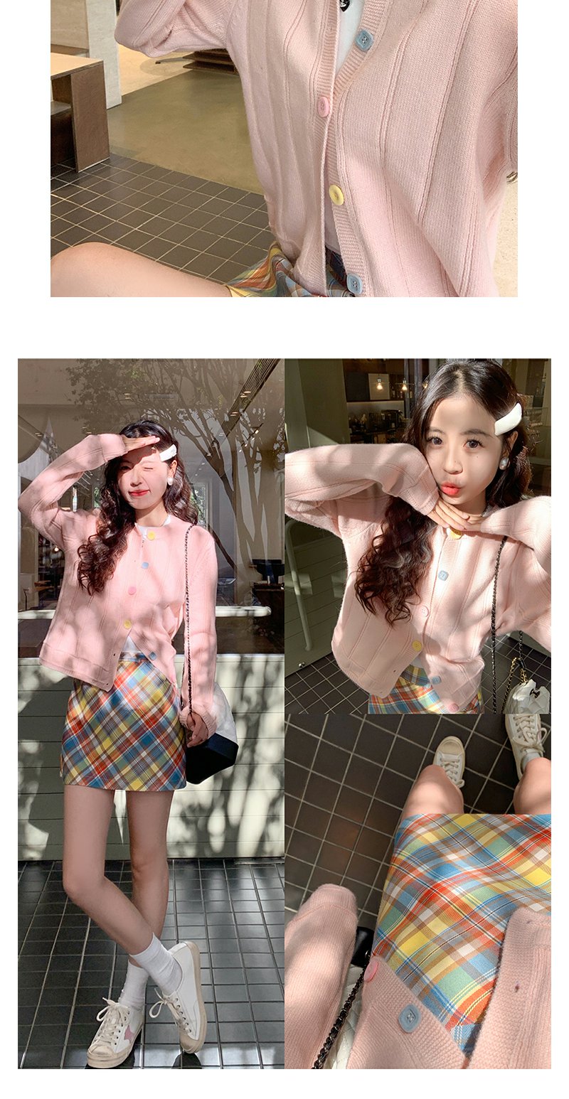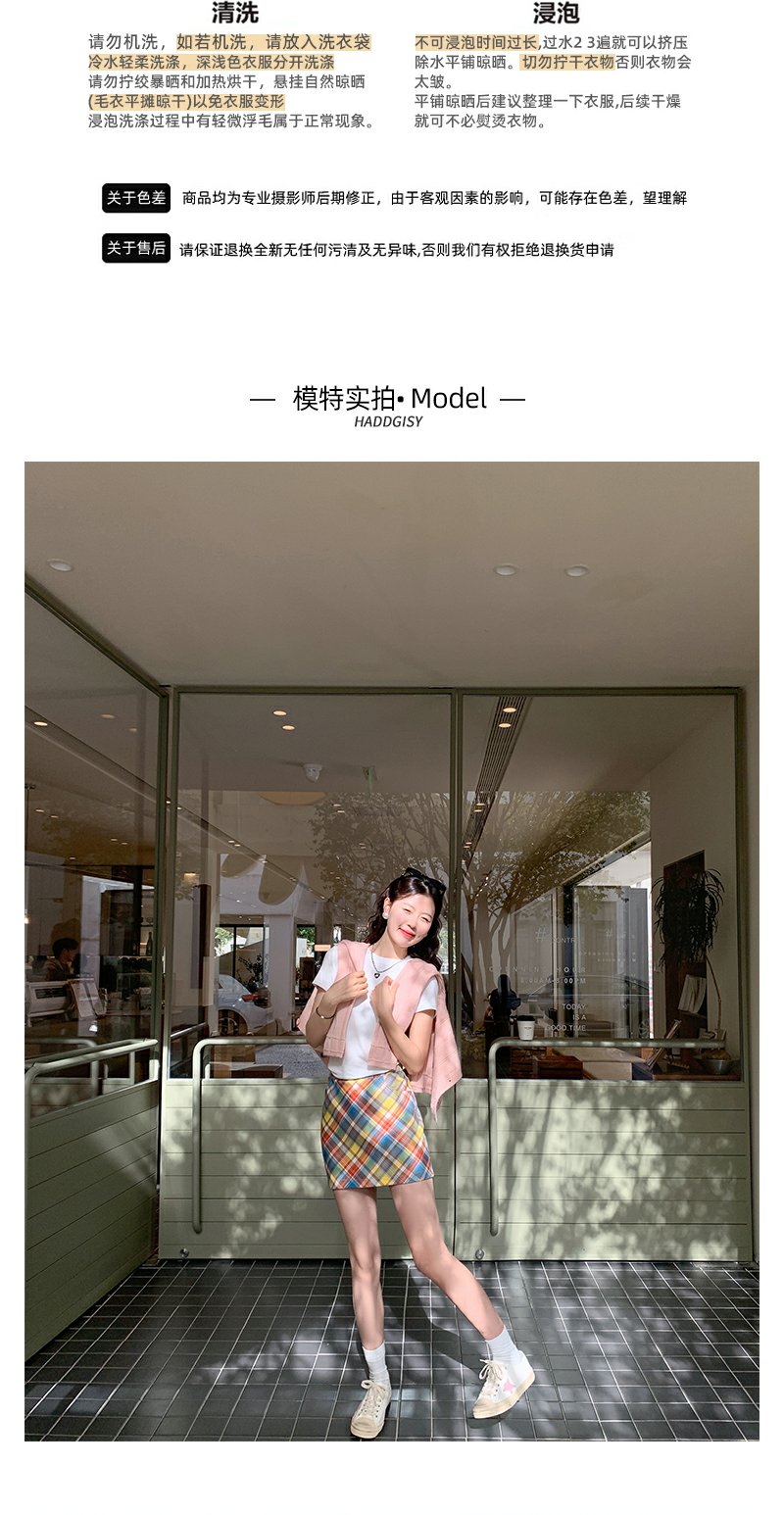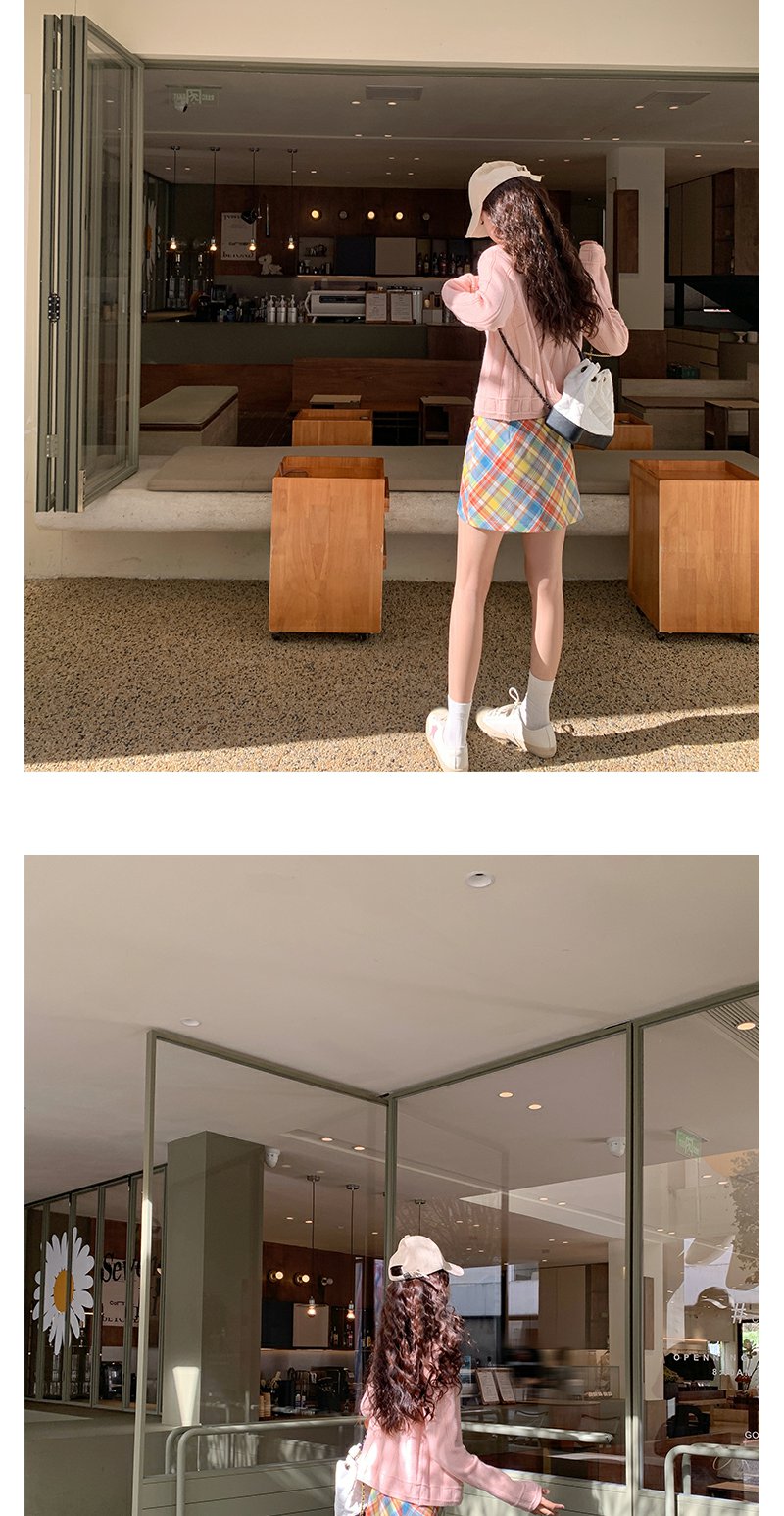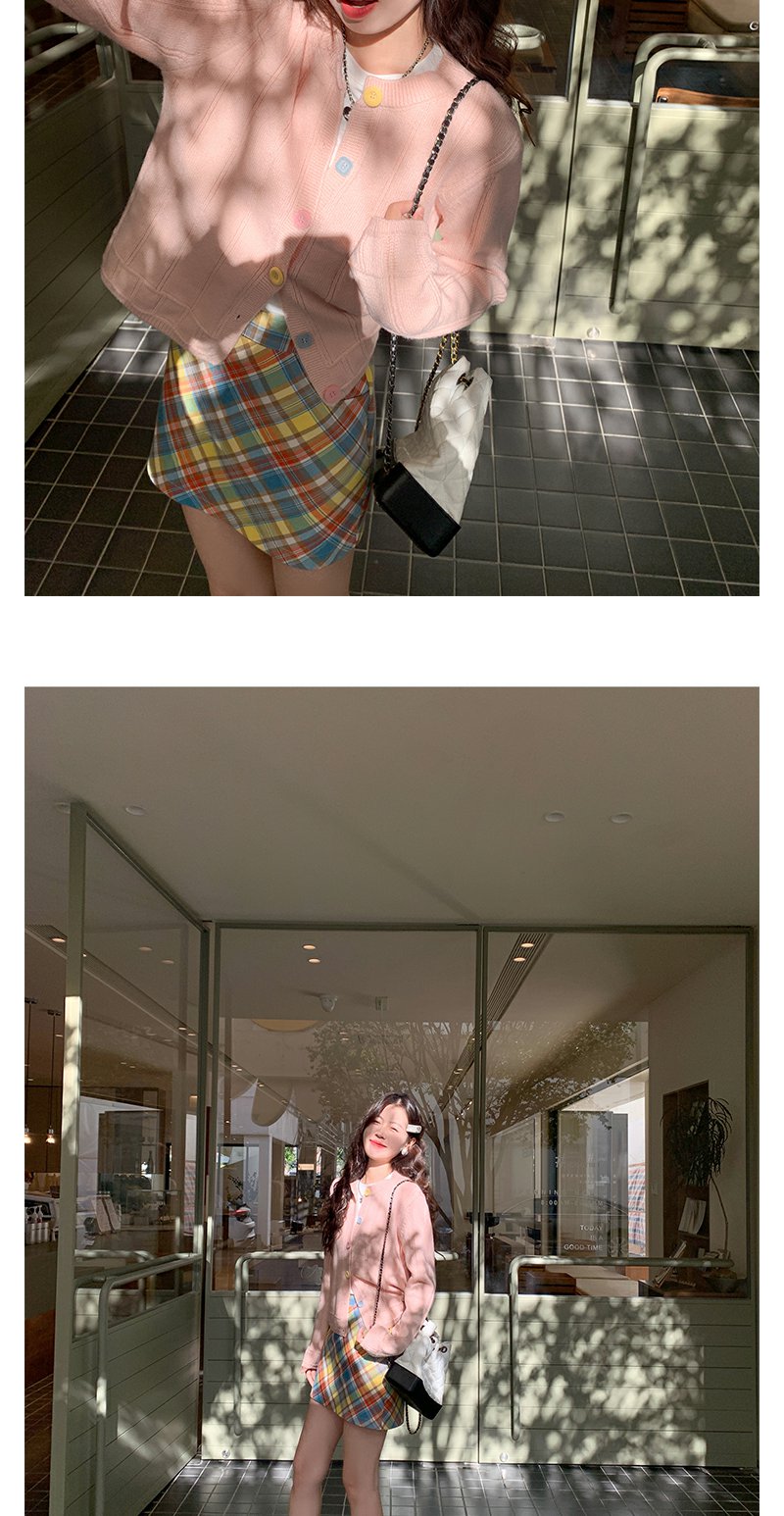 <曾小咸推荐>多巴胺look针织开衫格子半裙