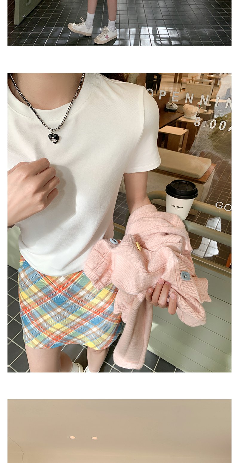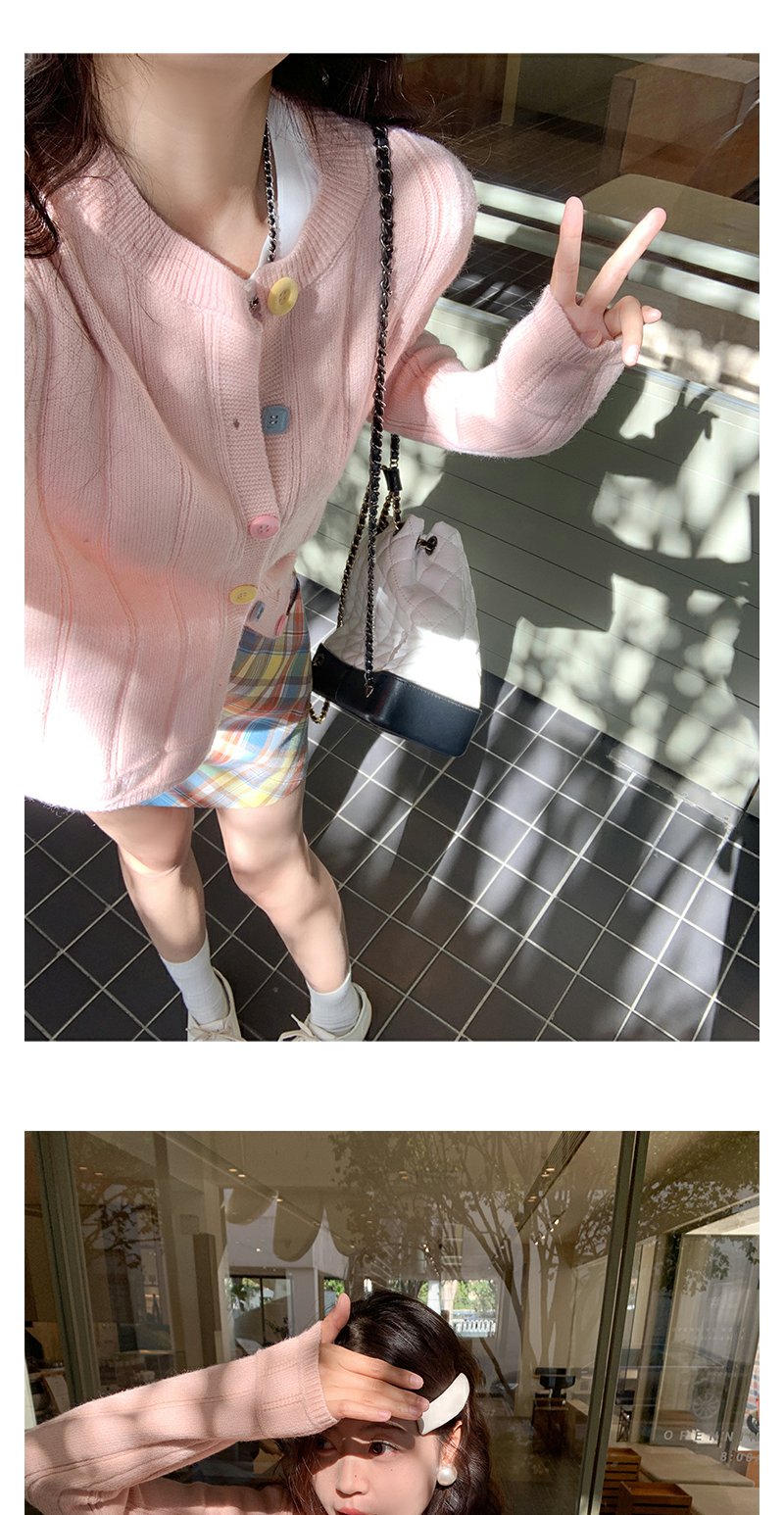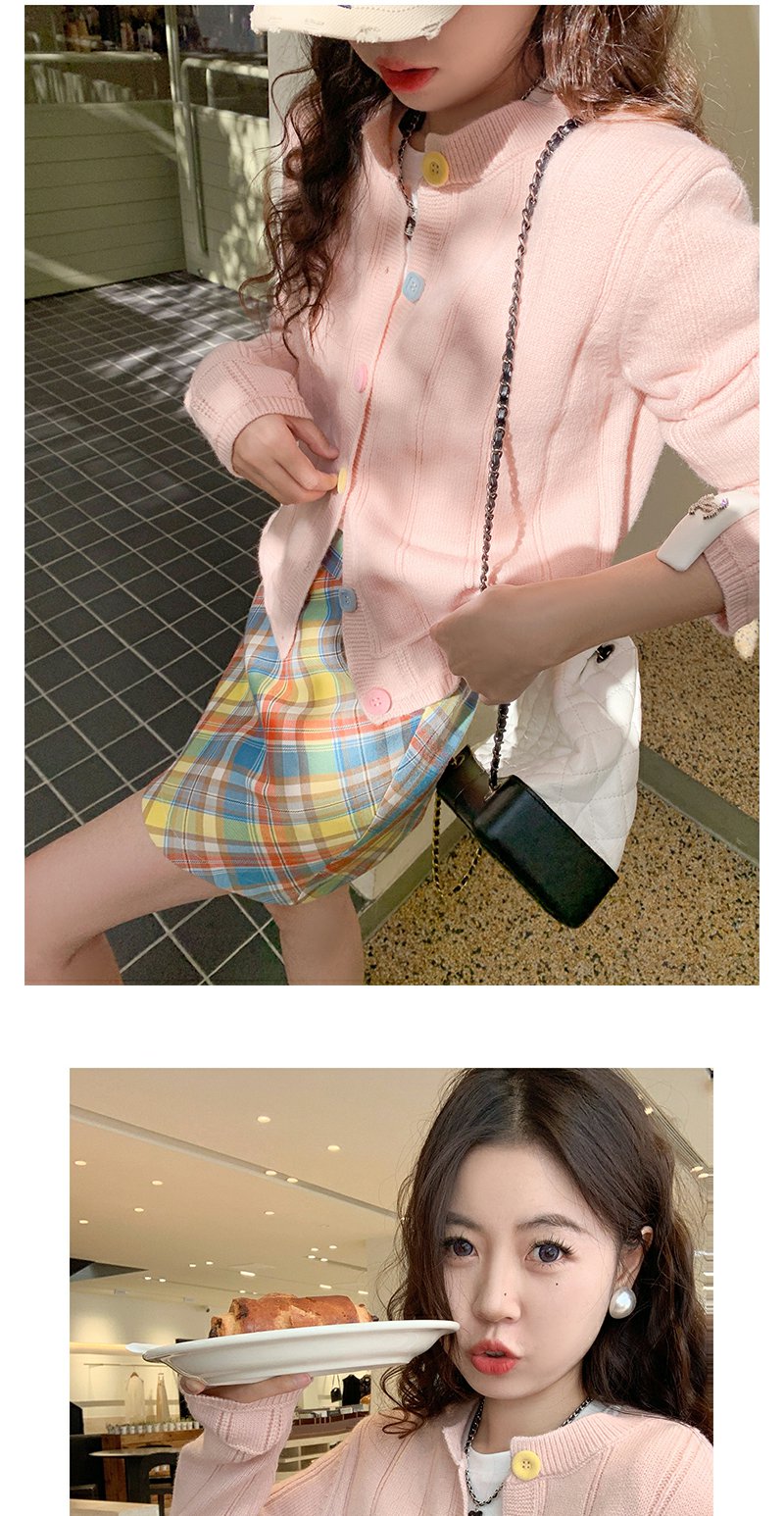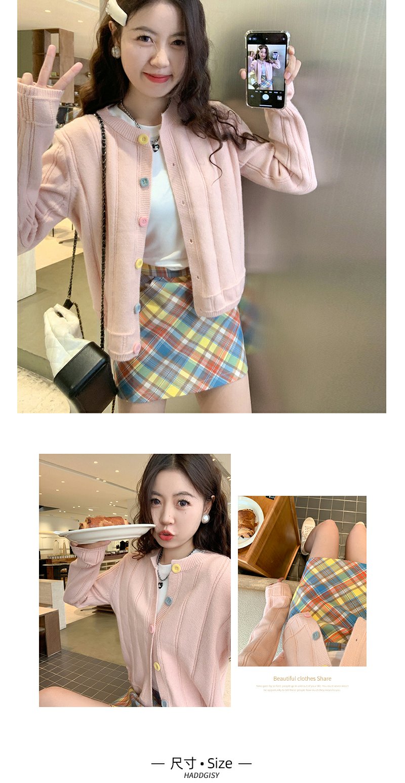 <曾小咸推荐>多巴胺look针织开衫格子半裙