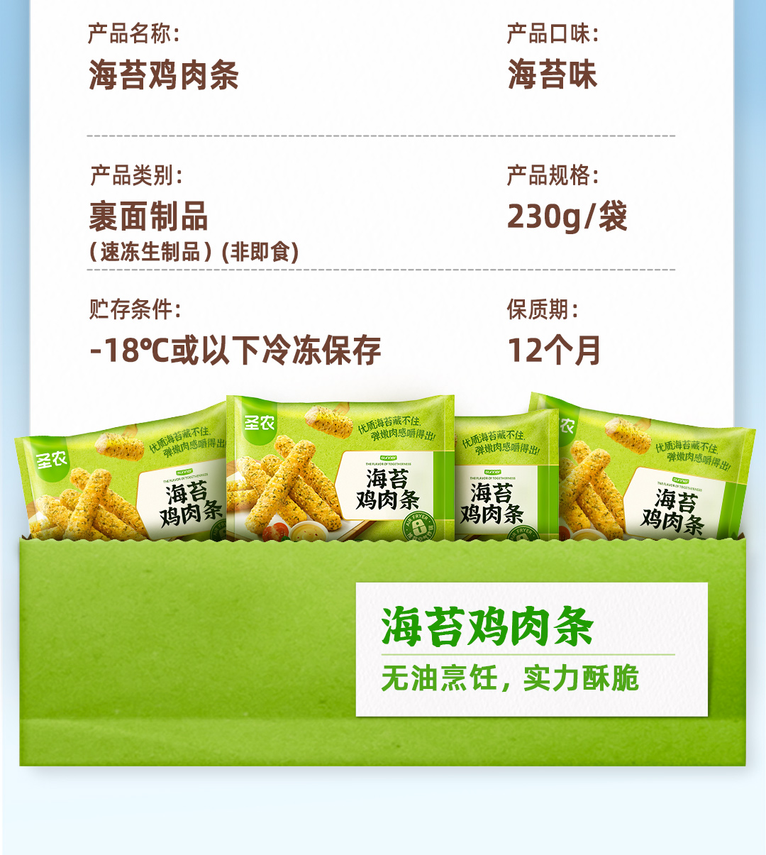 【海苔鸡肉条】圣农海苔鸡肉条230g*8包+赠(小炸鸡*1包)