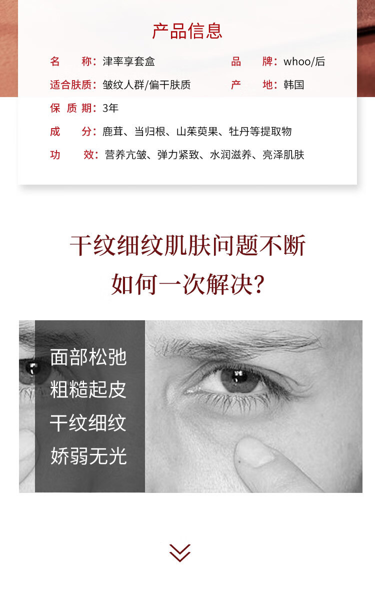 【海豚美购】韩国Whoo后津率享6件套装中样 水20ml+乳20ml+精华5ml+眼霜4ml+霜10ml+洗面奶40ml