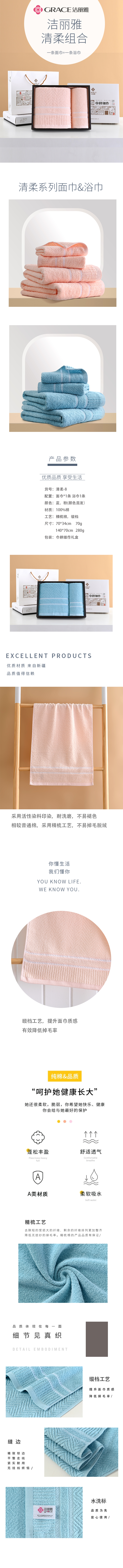 洁丽雅 两件套新疆棉礼盒 (面巾*1条,浴巾*1条)