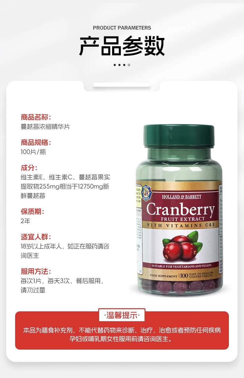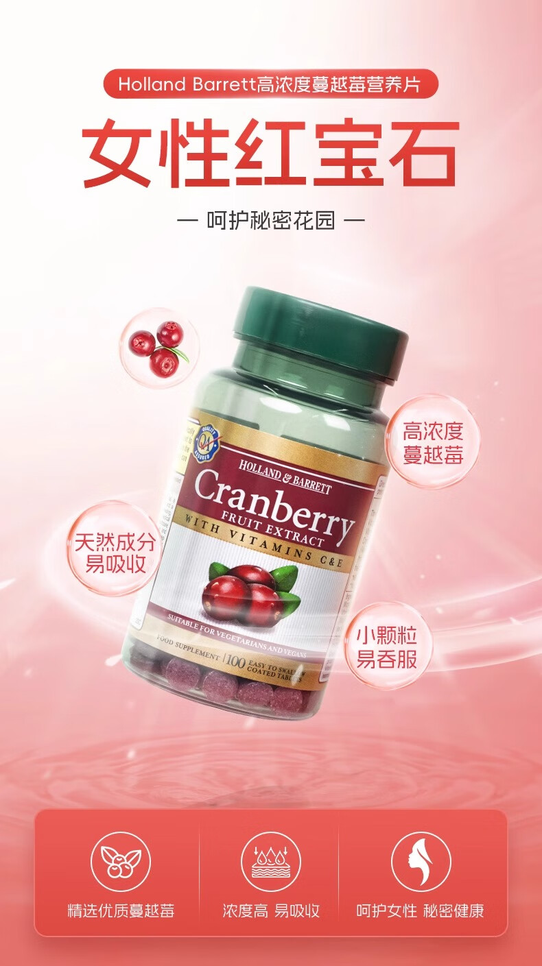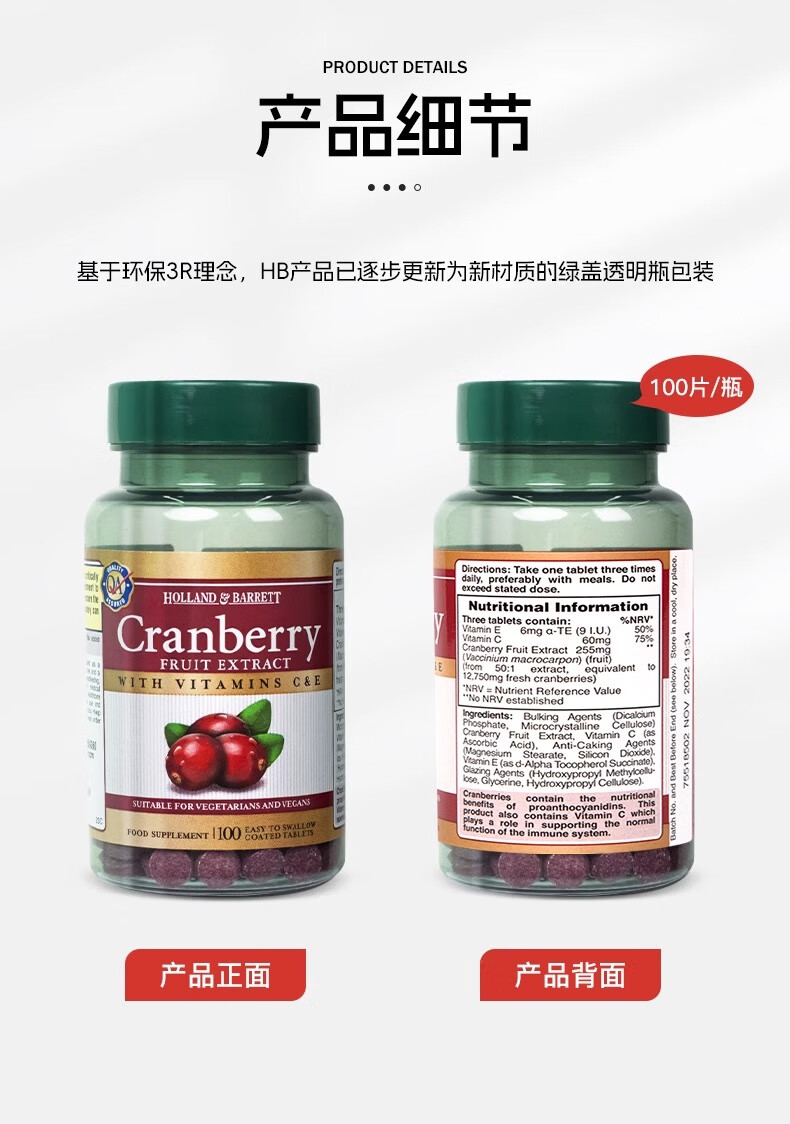 HollandBarrett荷柏瑞浓缩蔓越莓营养片 效期26.3月