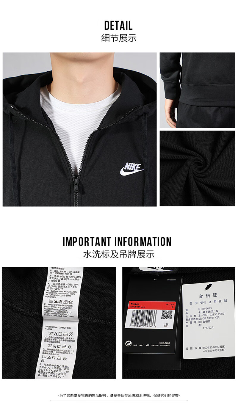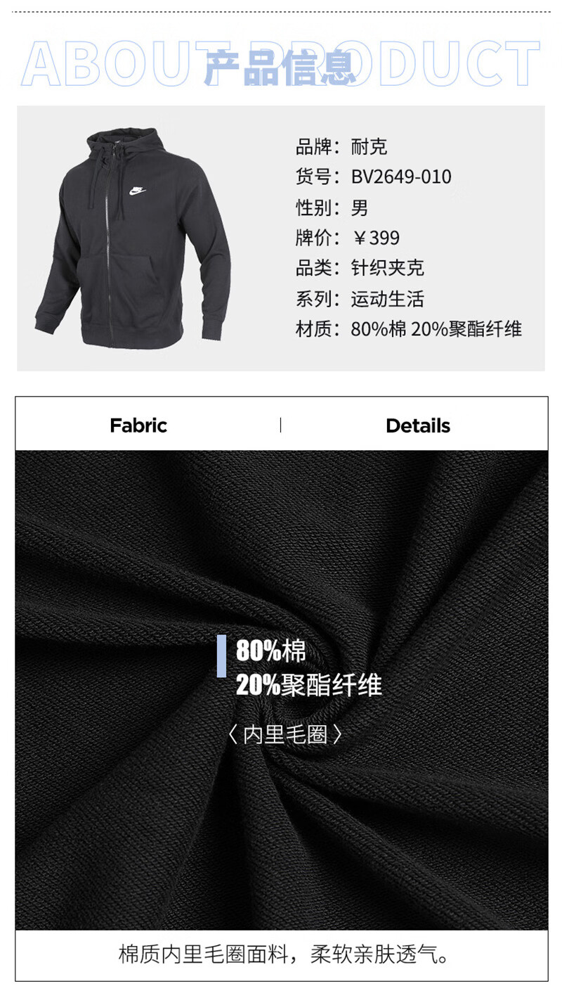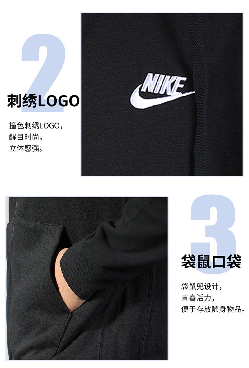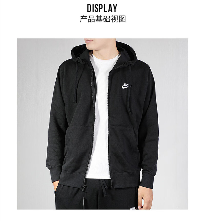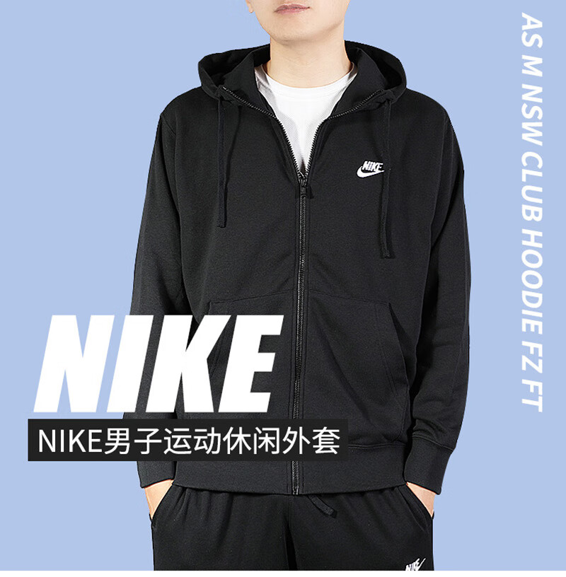 耐克(NIKE)男子夹克 NSW CLUB HOODIE FZ 运动连帽外套 BV2649-010