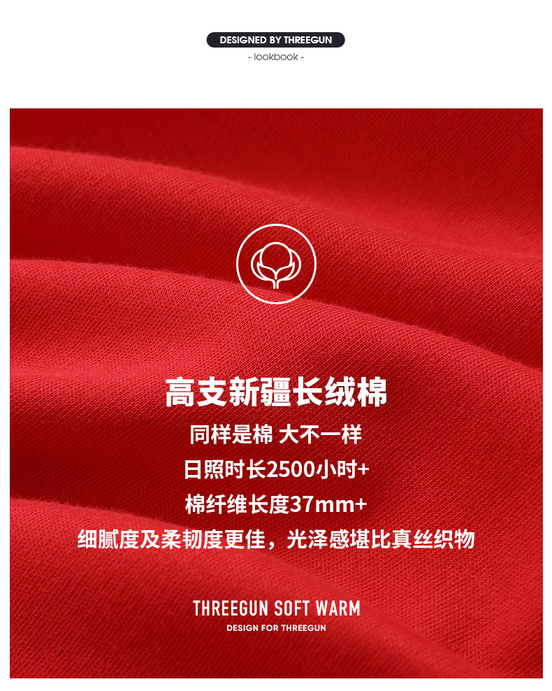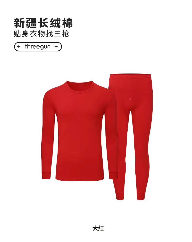 Threegun三枪 吉庆高支新疆长绒棉圆领男内衣套-24295D021