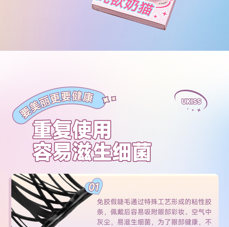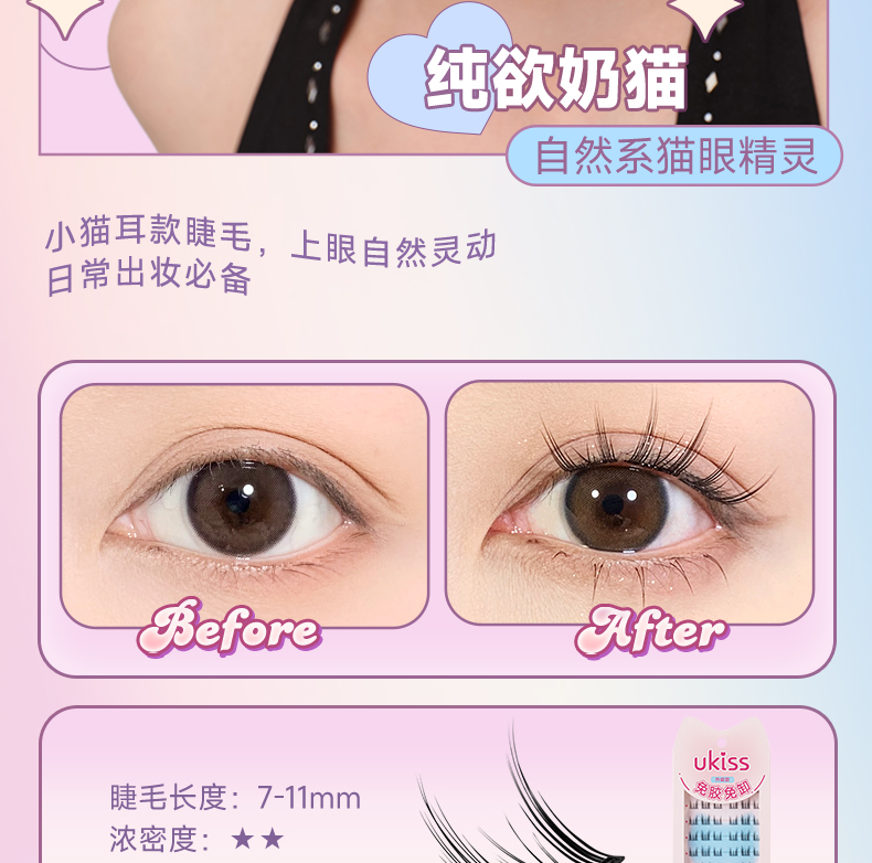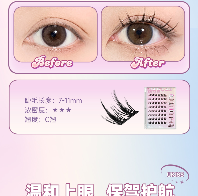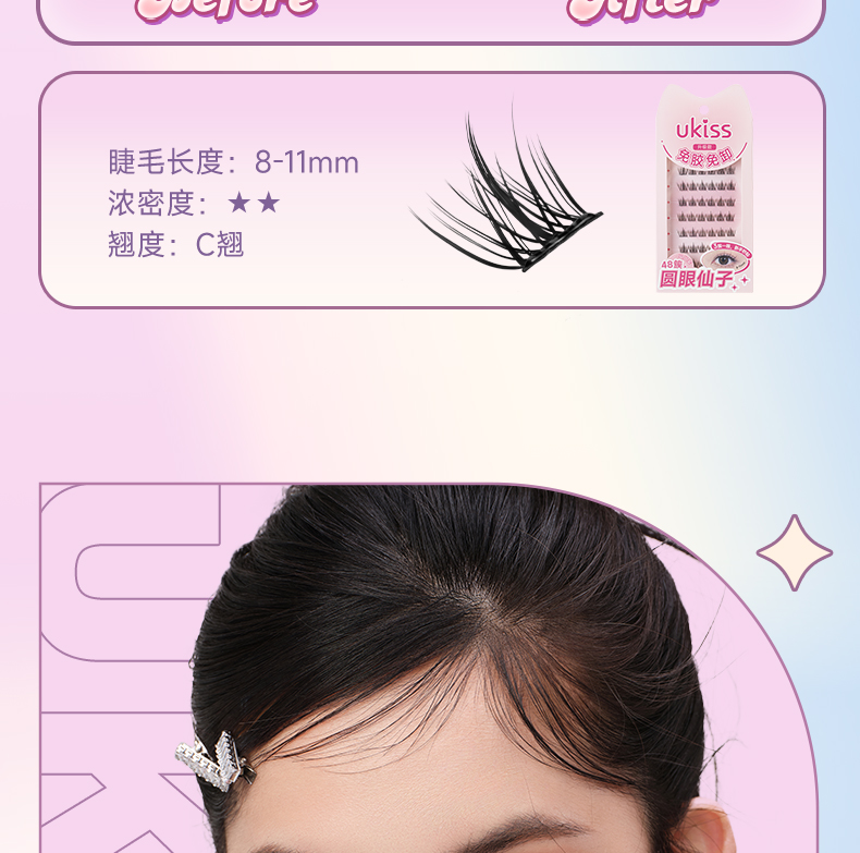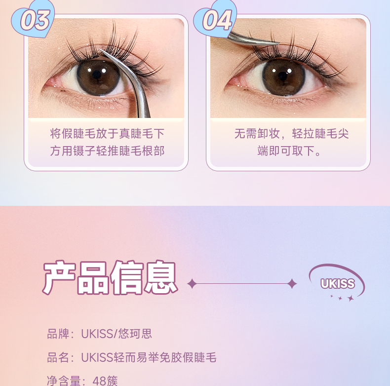 【专区59元任选3件】【免胶免卸 轻松搞定眼妆灵魂】ukiss悠珂思轻而易举免胶假睫毛