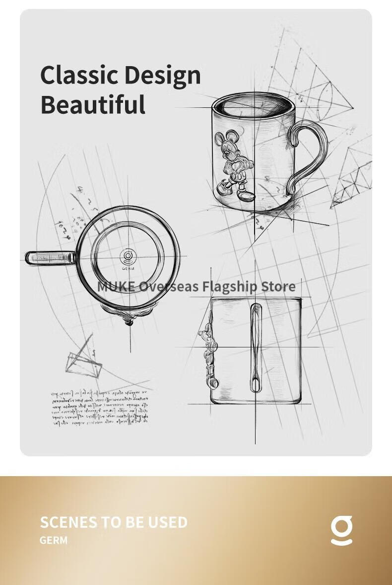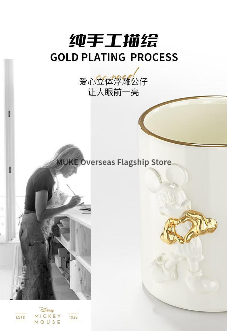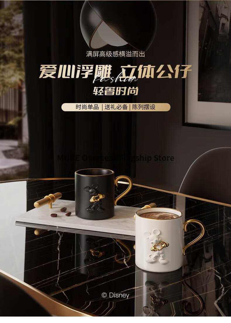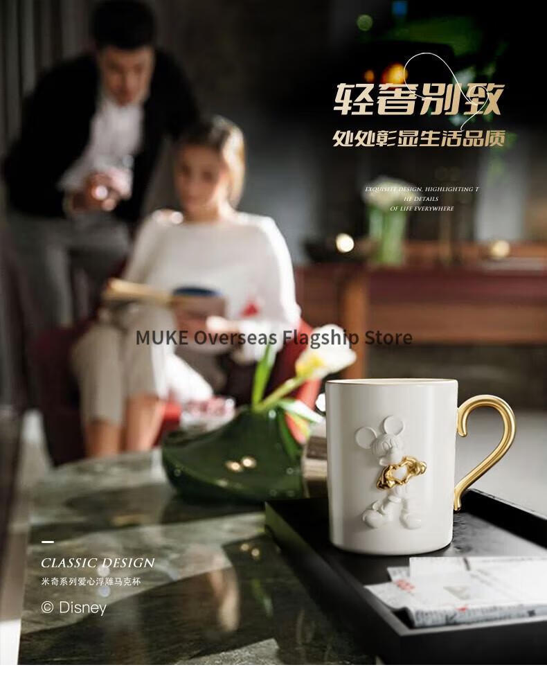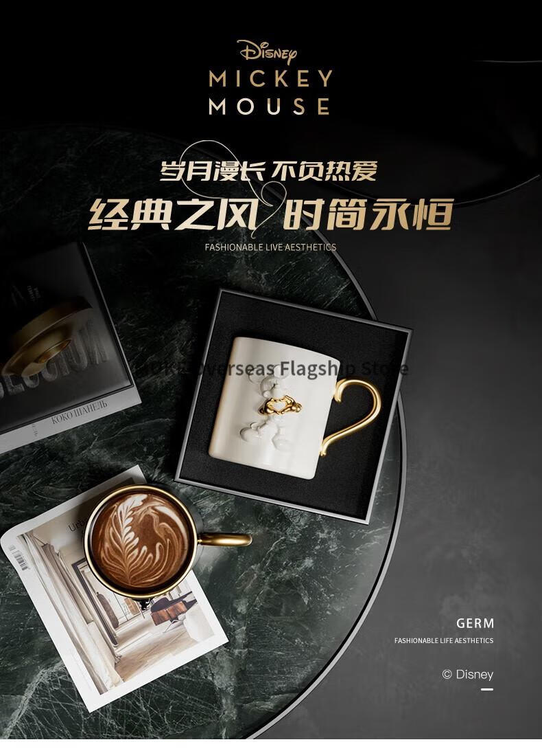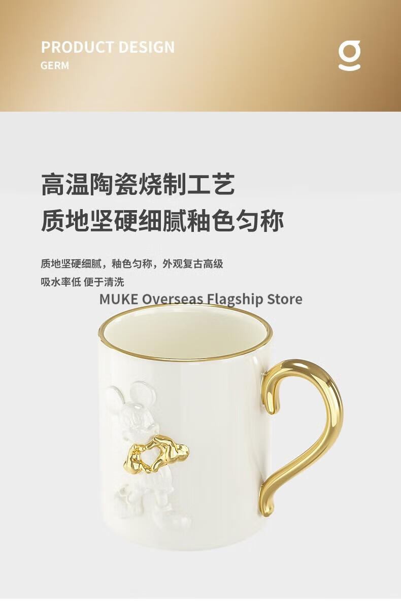 【小家电】格沵(germ)格沵GERM米奇爱心浮雕马克杯情侣陶瓷水杯家用咖啡杯 爱心浮雕-荼白415ML HF