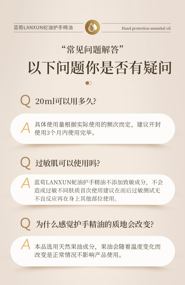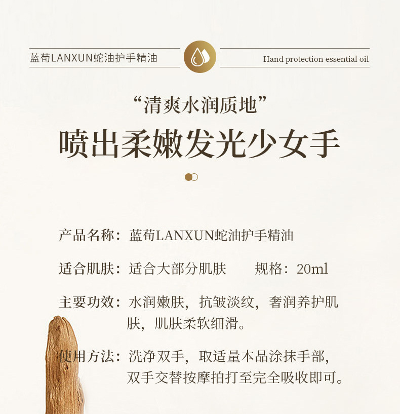 【水润嫩滑双手!手部护理精油】清爽不黏腻蛇油护手精油秋冬皮肤防干裂补水滋润保湿护足霜护手霜