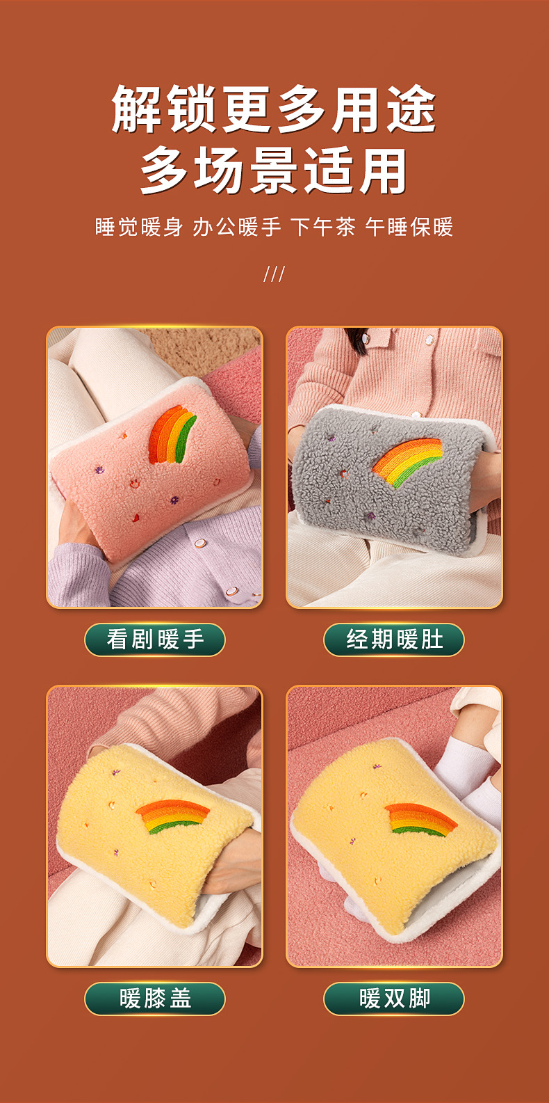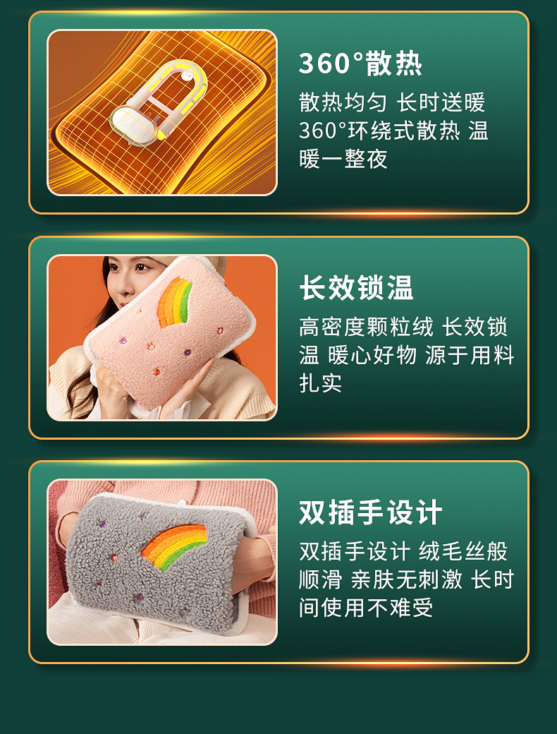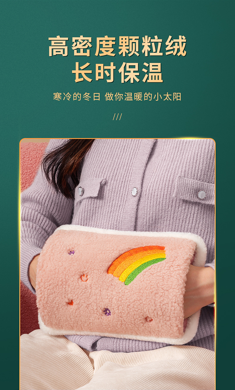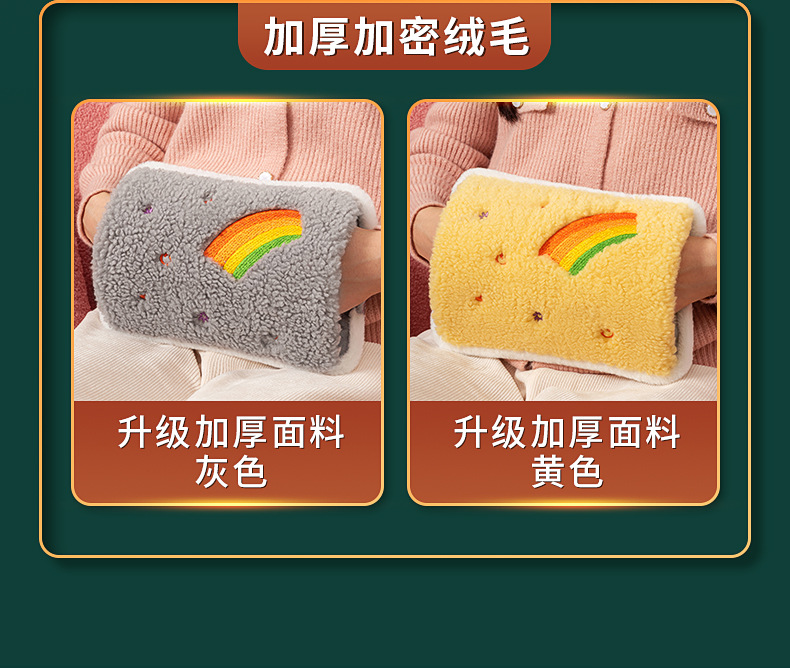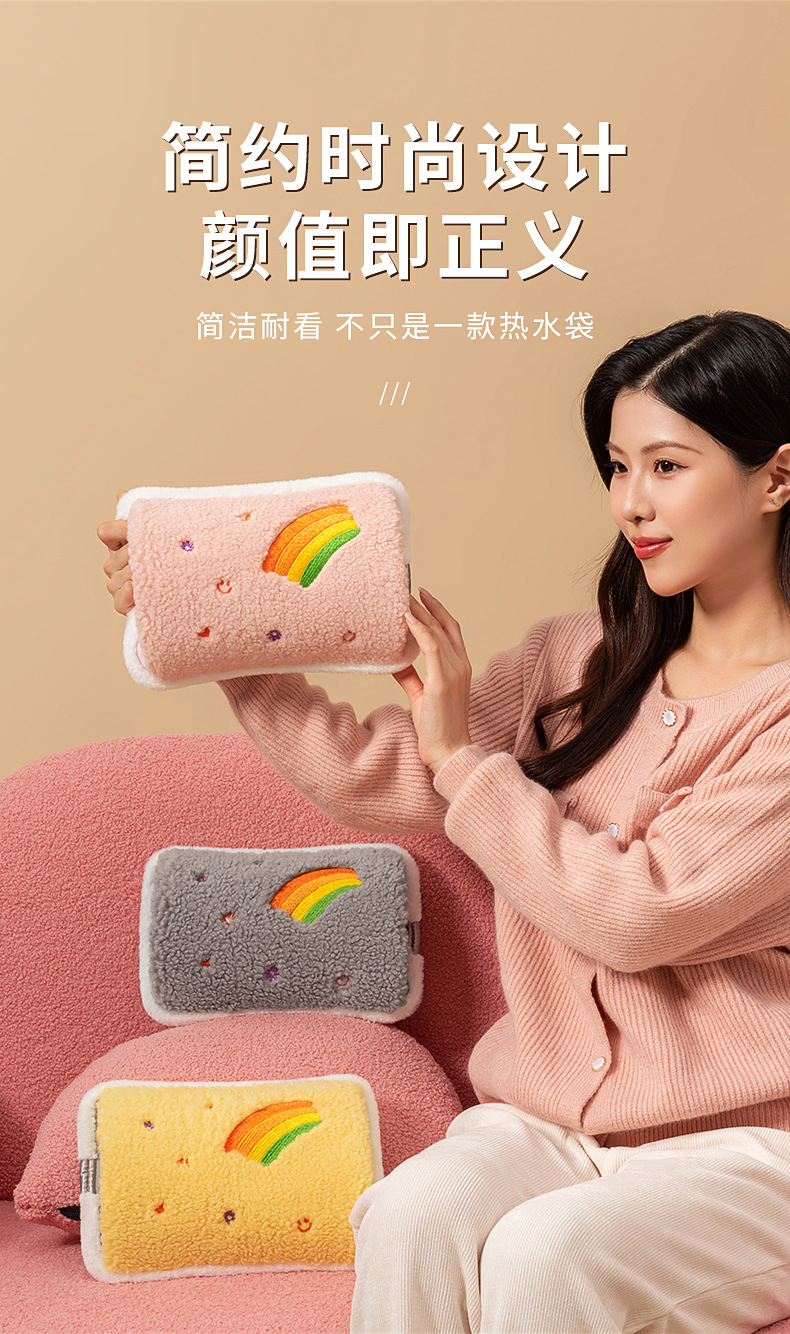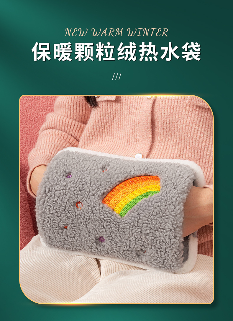 新款国标毛绒充电式热水袋防爆夹家用暖水袋暖宝宝水电分离灰色