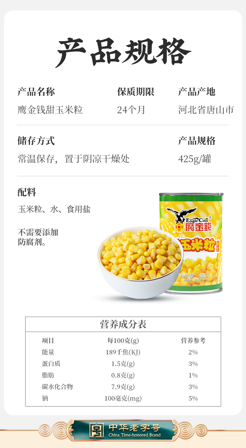 鹰金钱牌拉盖甜玉米粒 三罐装(TY)