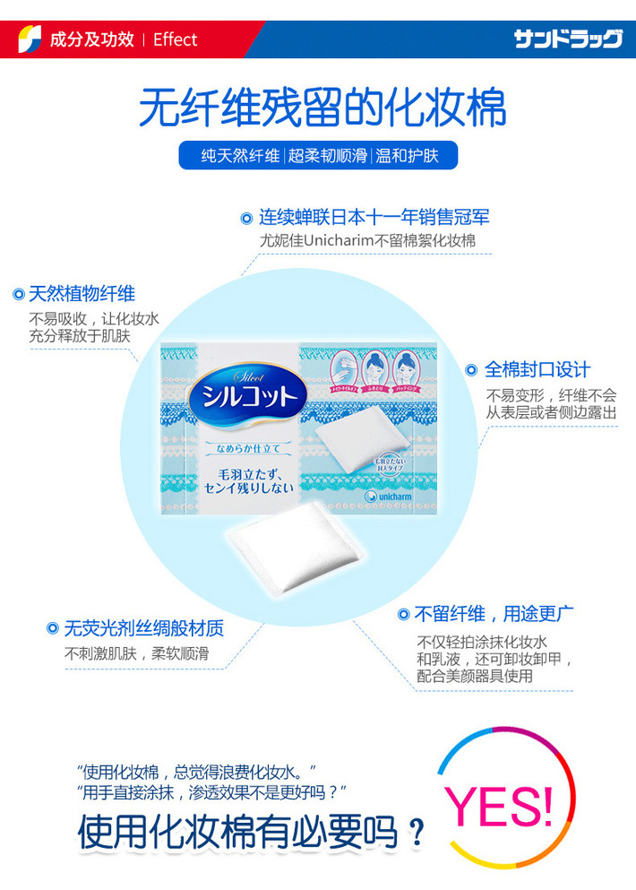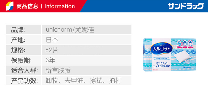 日本尤妮佳超柔软亲肤压边化妆棉82枚