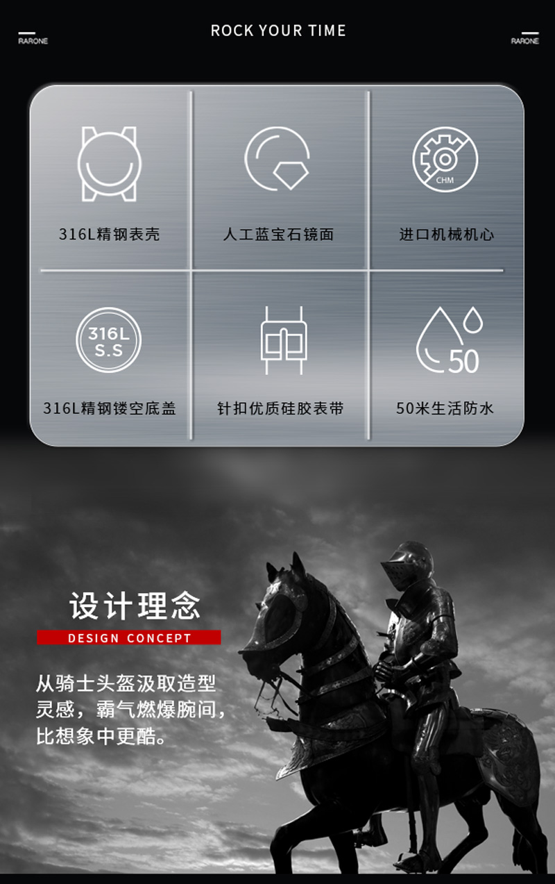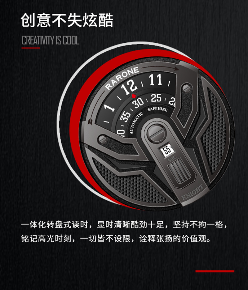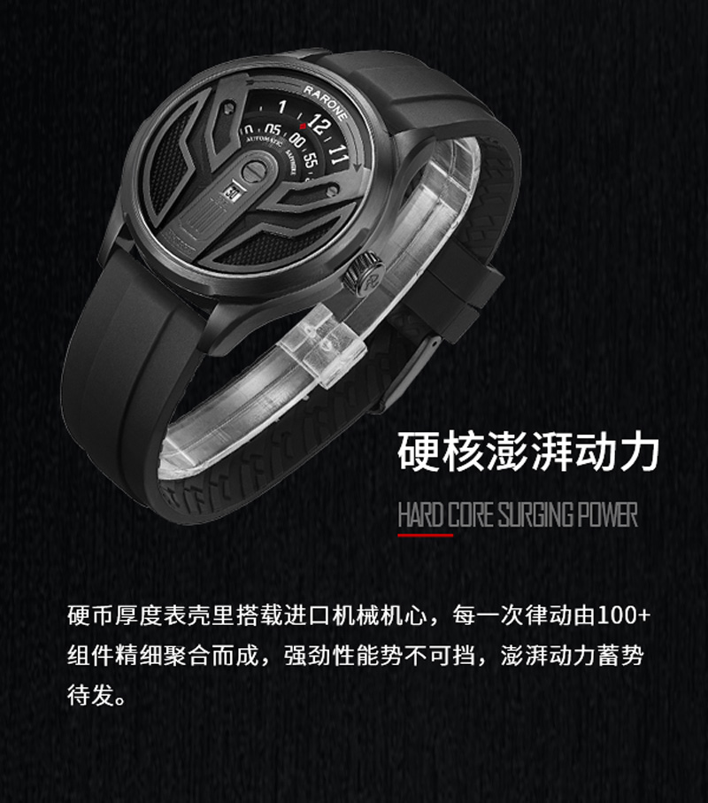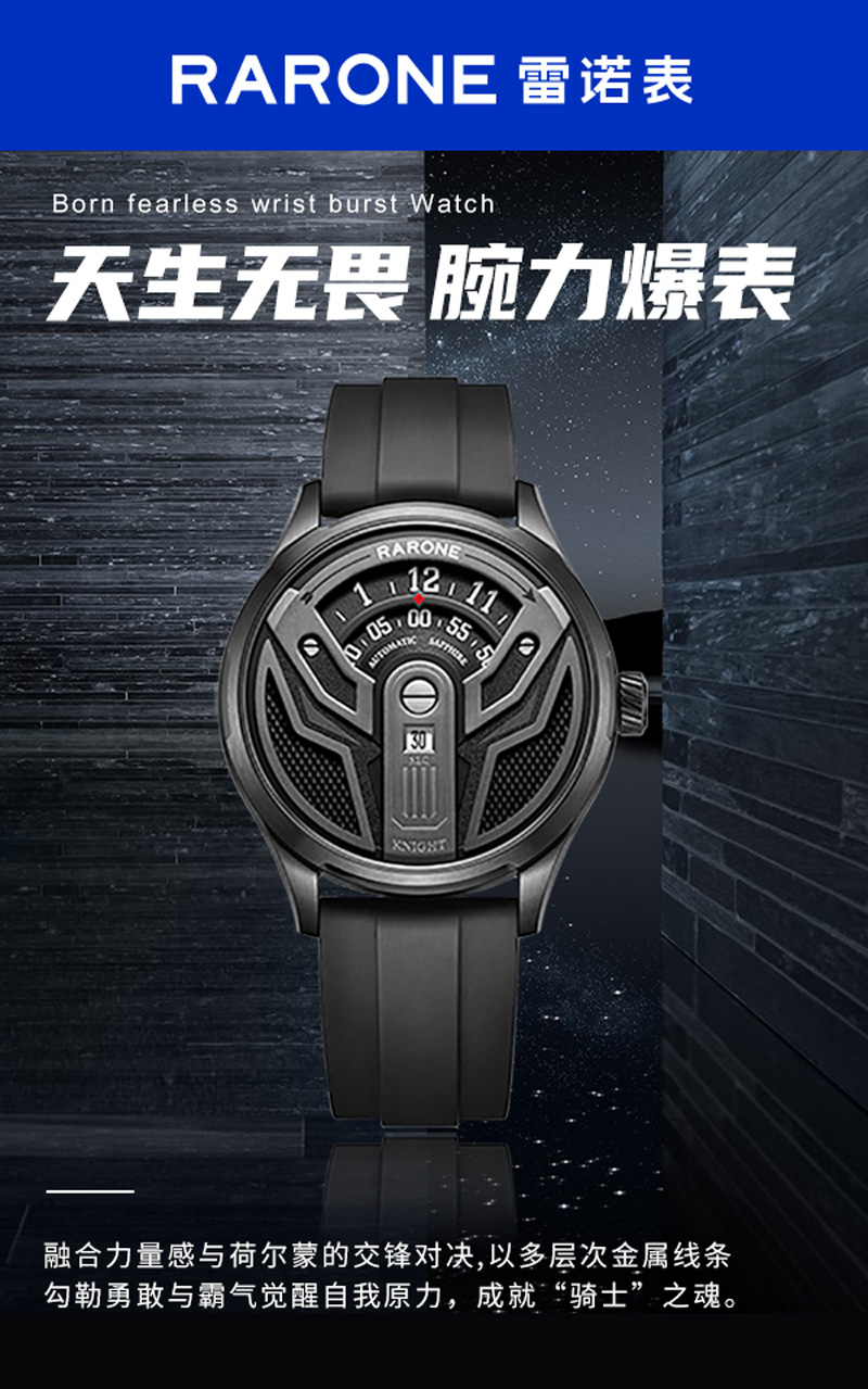 RARONE雷诺表始终秉持创新设计与精品战略。旨在帮助人们精确感悟时间,以一种无畏、坚韧的精英态度,激励每个人在探索世界的过程中,御时而行。