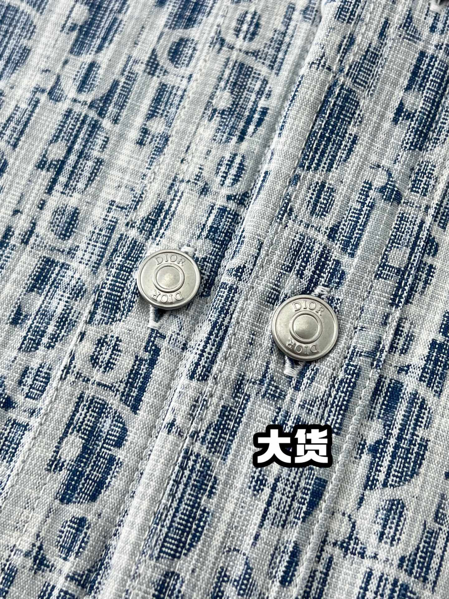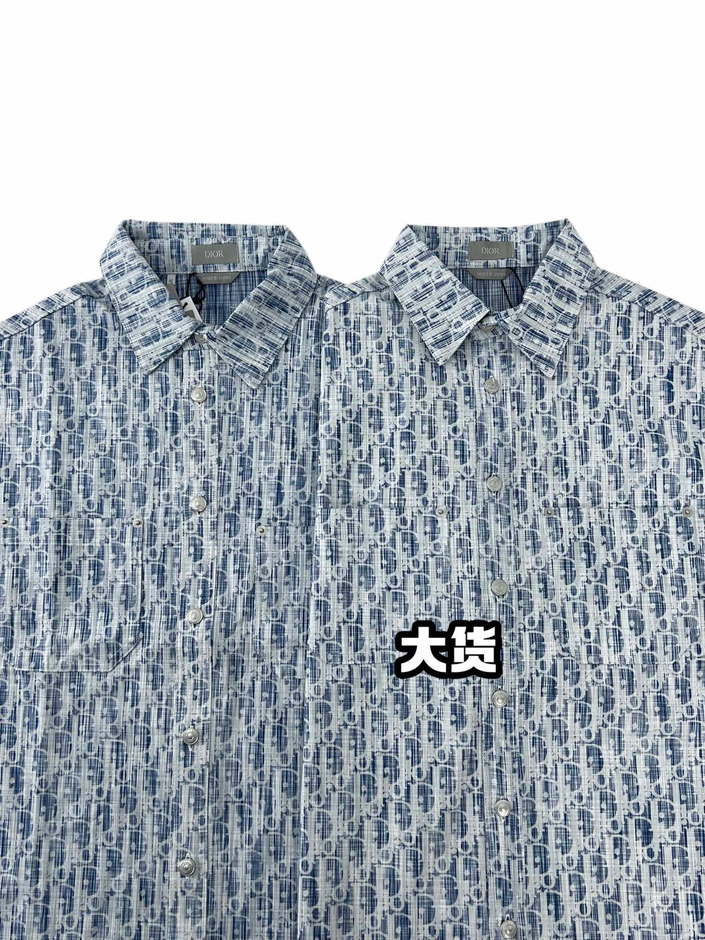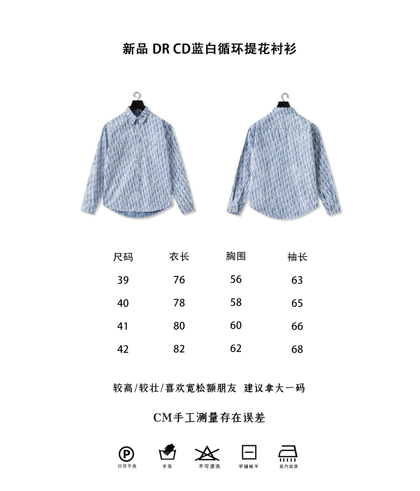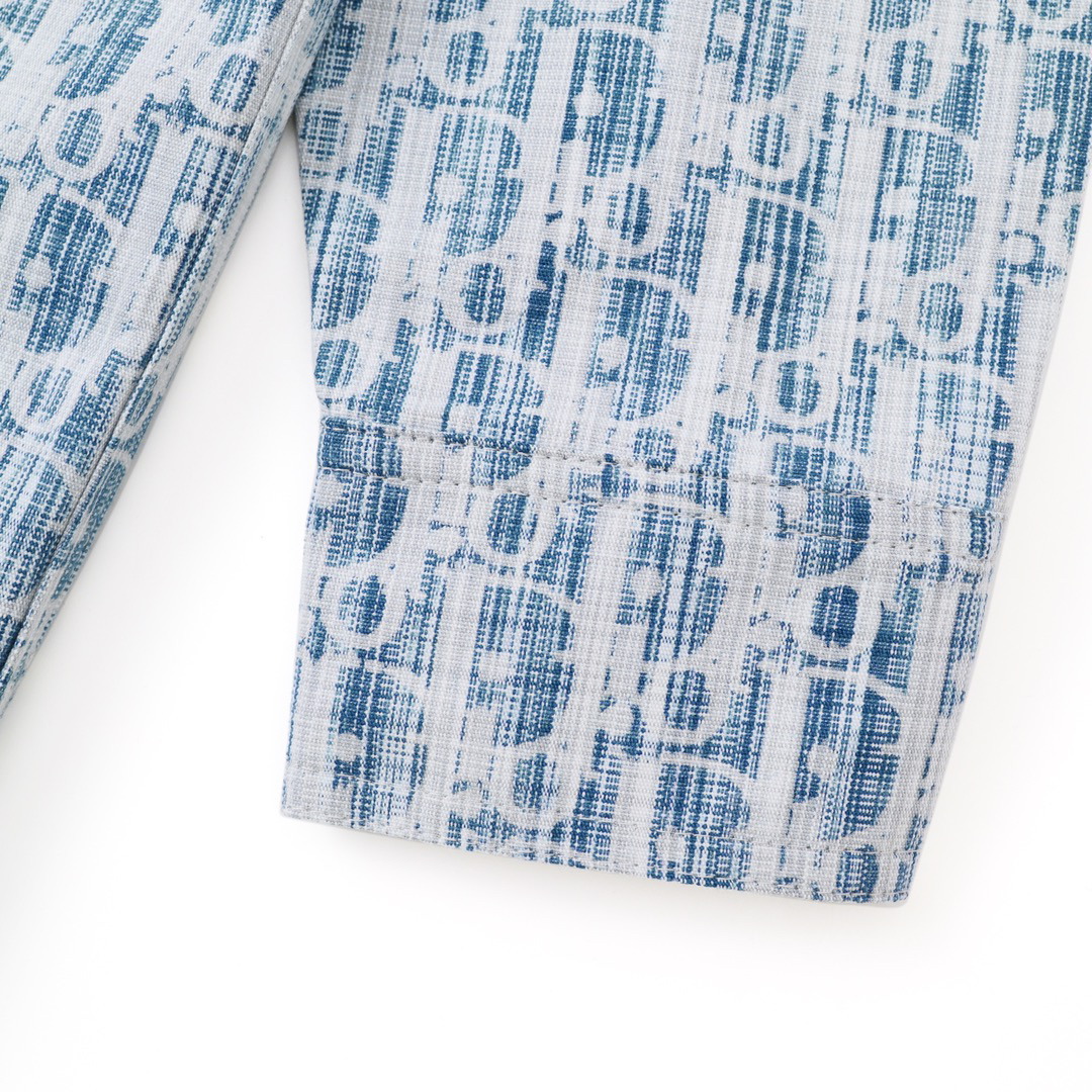 这款外套衬衫采用蓝色和白色棉质牛仔布精心制作,通体饰以漂白效果和赤耳细节,通体饰以白色Oblique Kasuri印花,赤耳细节,纽扣门襟,镌刻有DR标志的按扣 胸前贴袋。面料:100%棉 男女同款 SIZE:S M L XL