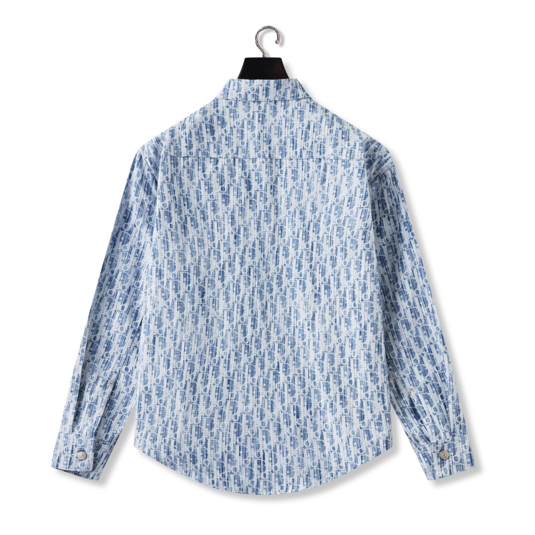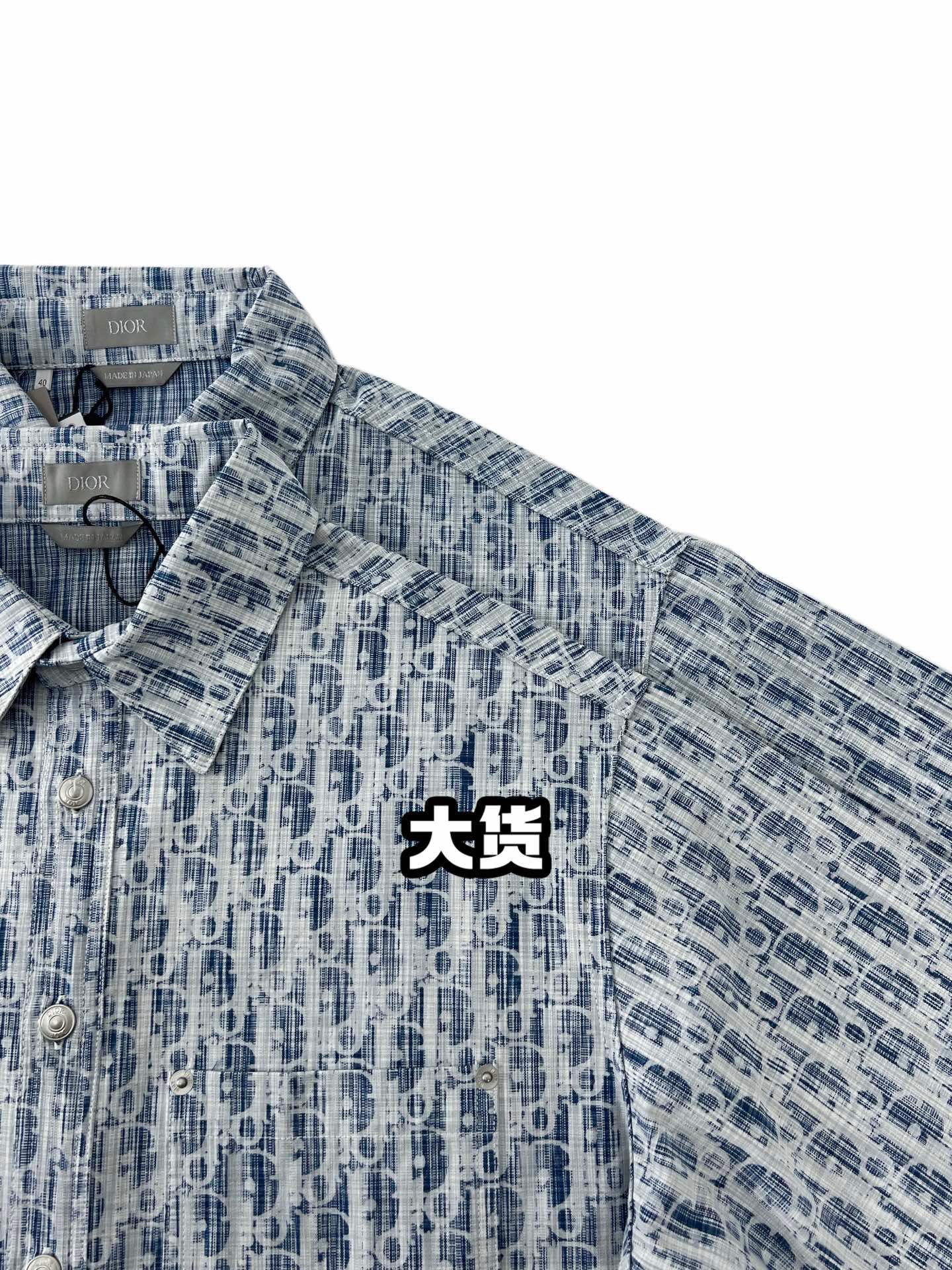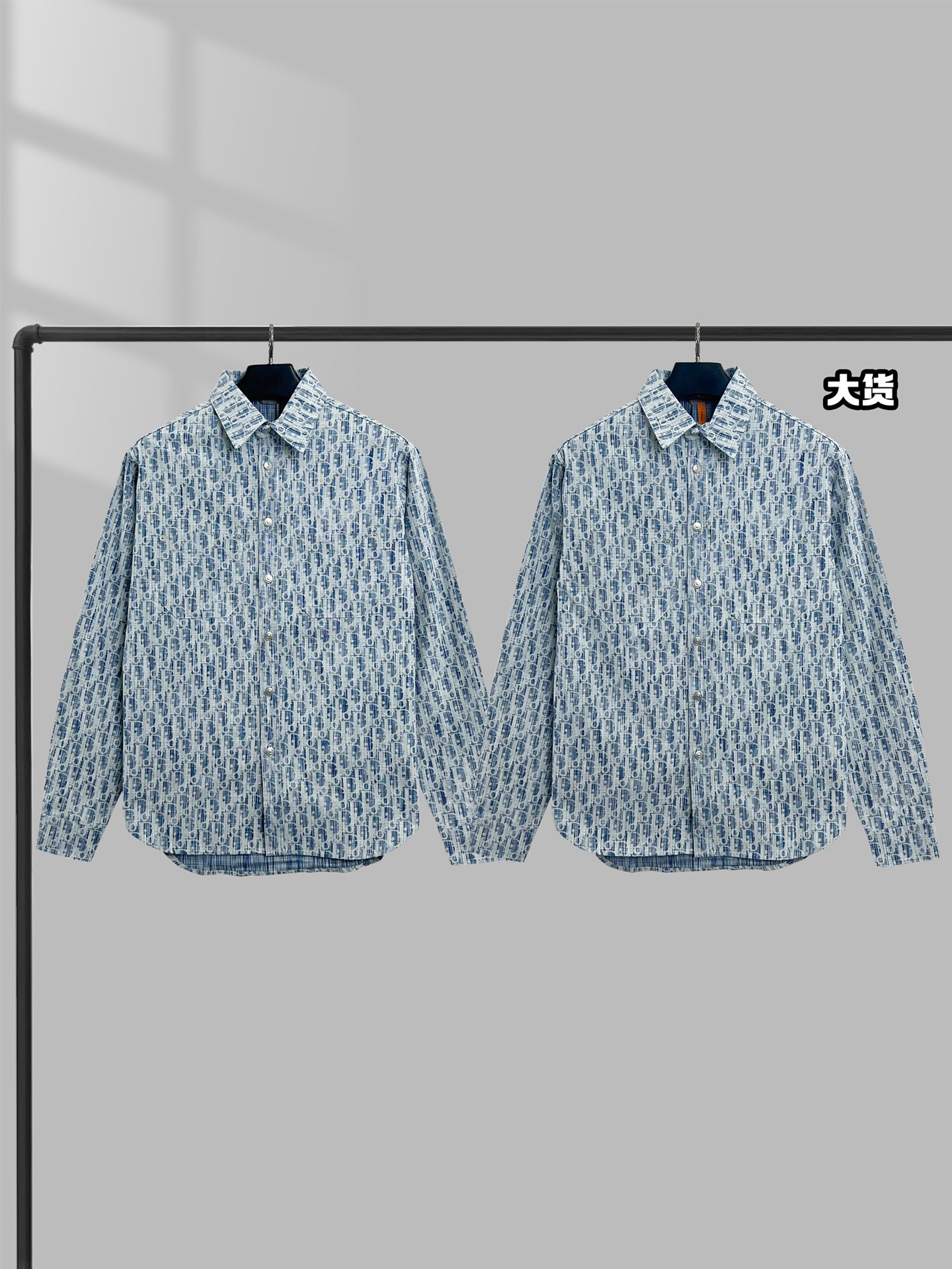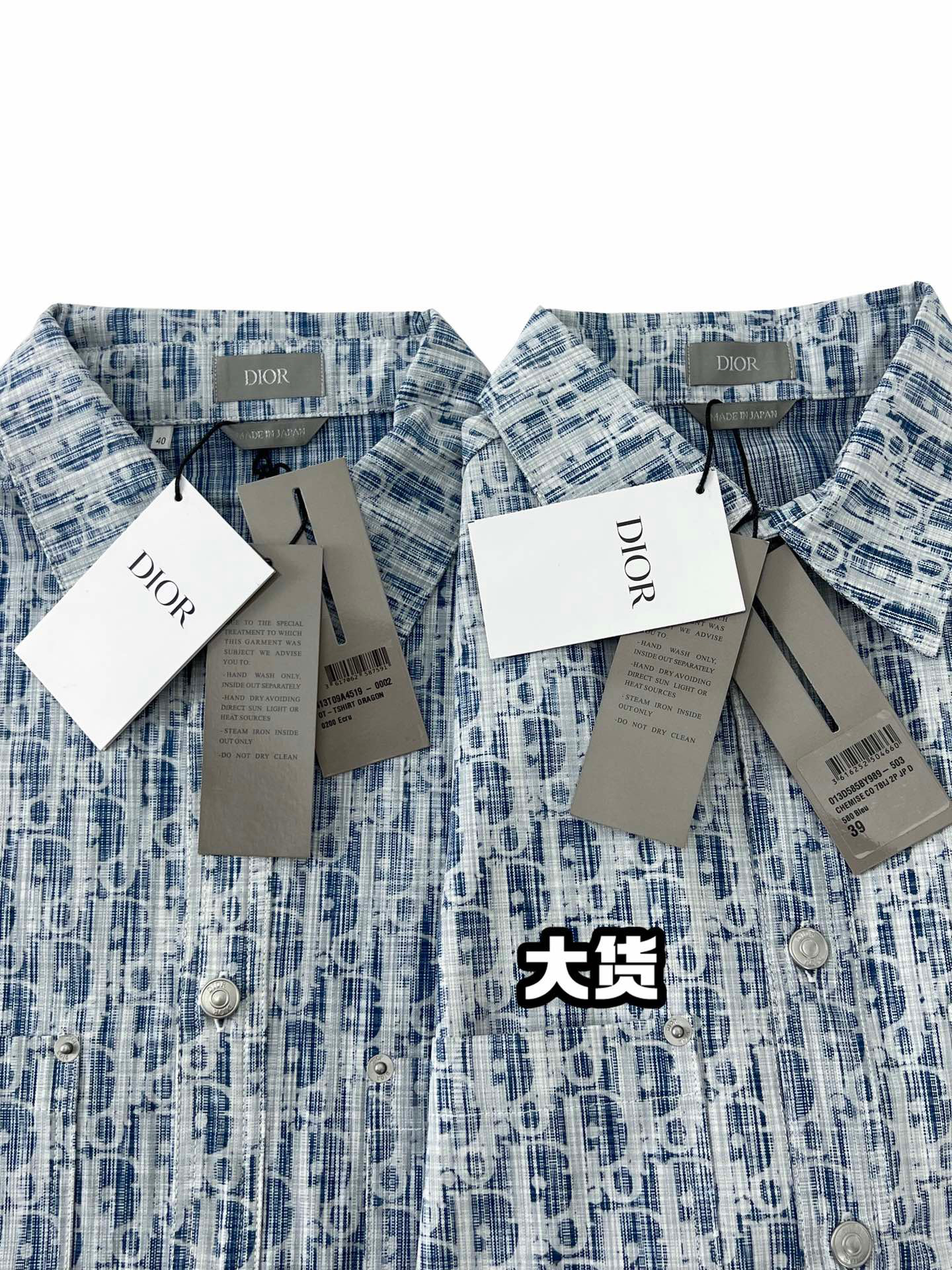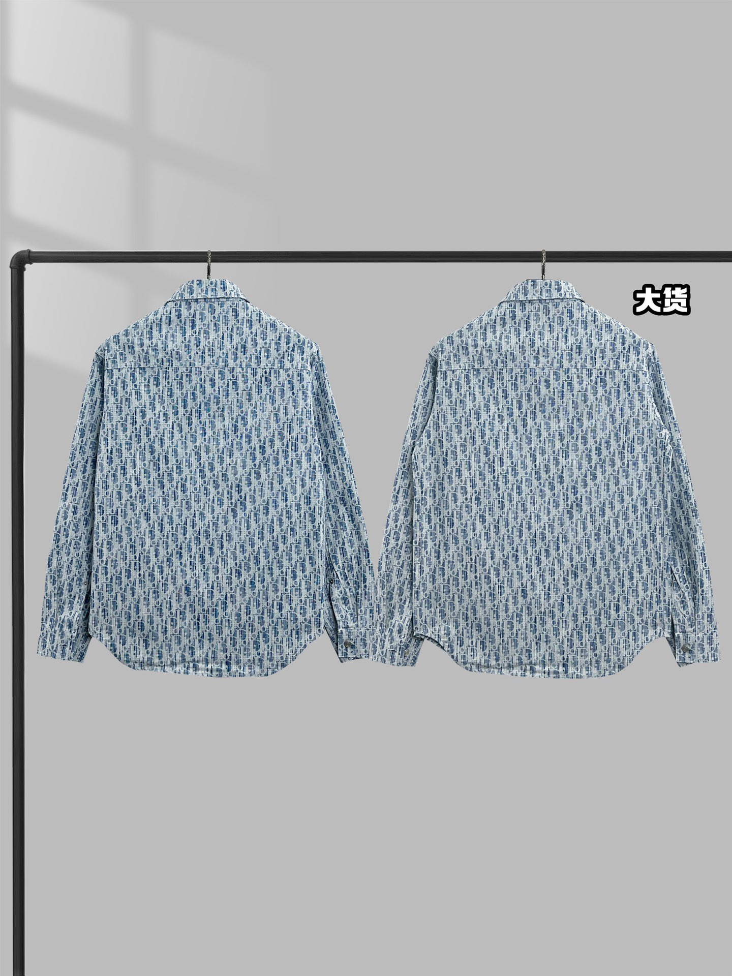 这款外套衬衫采用蓝色和白色棉质牛仔布精心制作,通体饰以漂白效果和赤耳细节,通体饰以白色Oblique Kasuri印花,赤耳细节,纽扣门襟,镌刻有DR标志的按扣 胸前贴袋。面料:100%棉 男女同款 SIZE:S M L XL