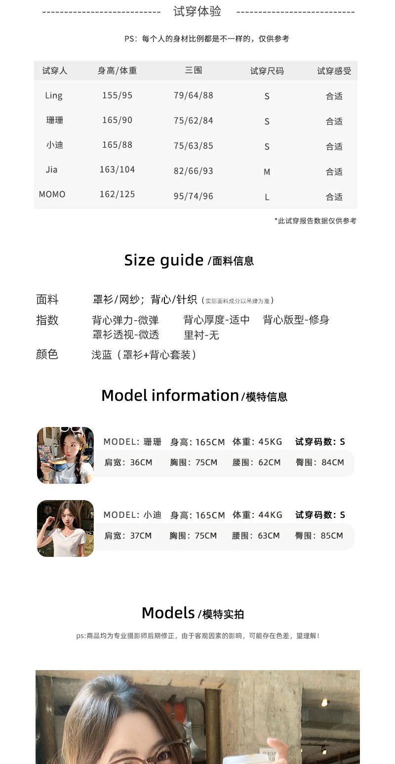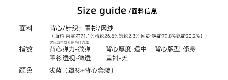 <曾小咸推荐> 韩系蓝色吊带背心白色长袖防晒衫2件套