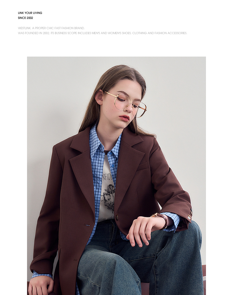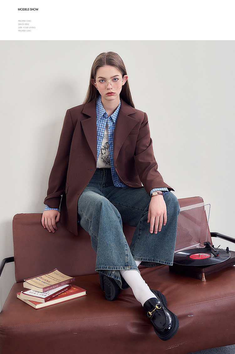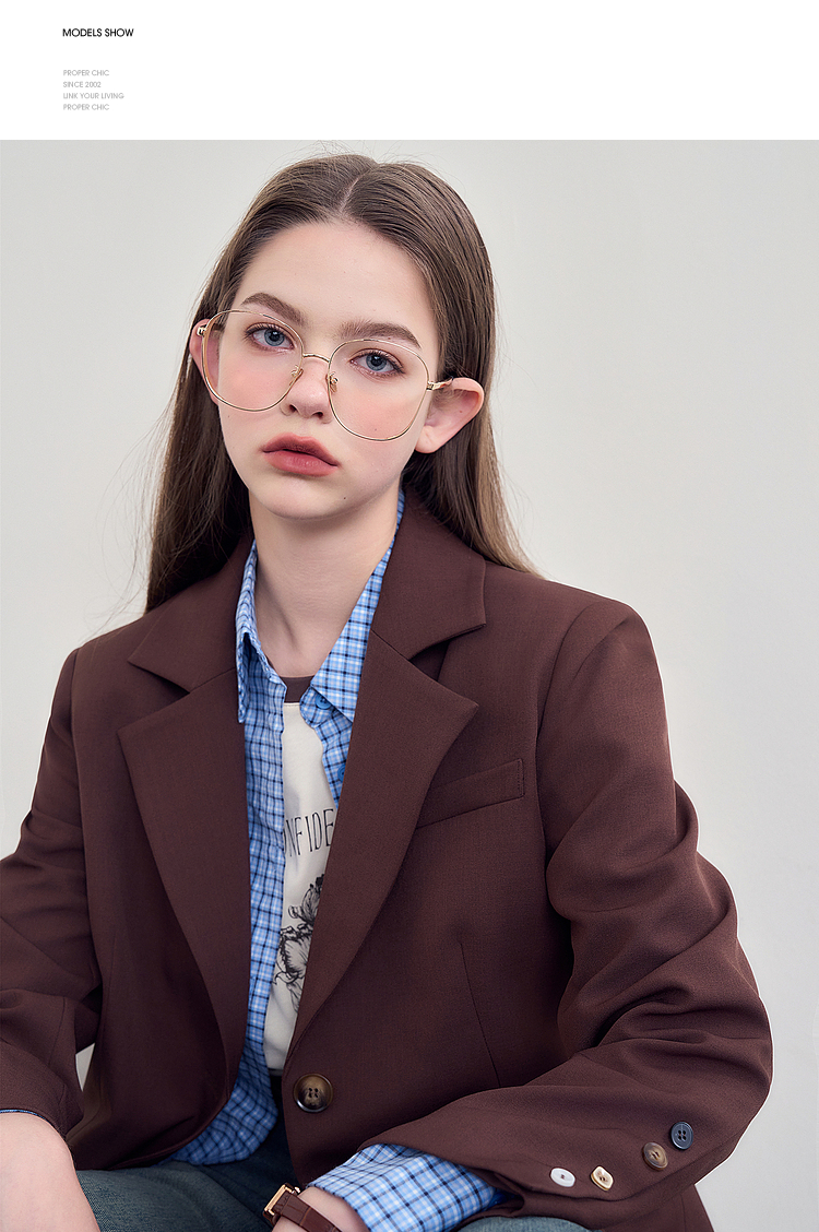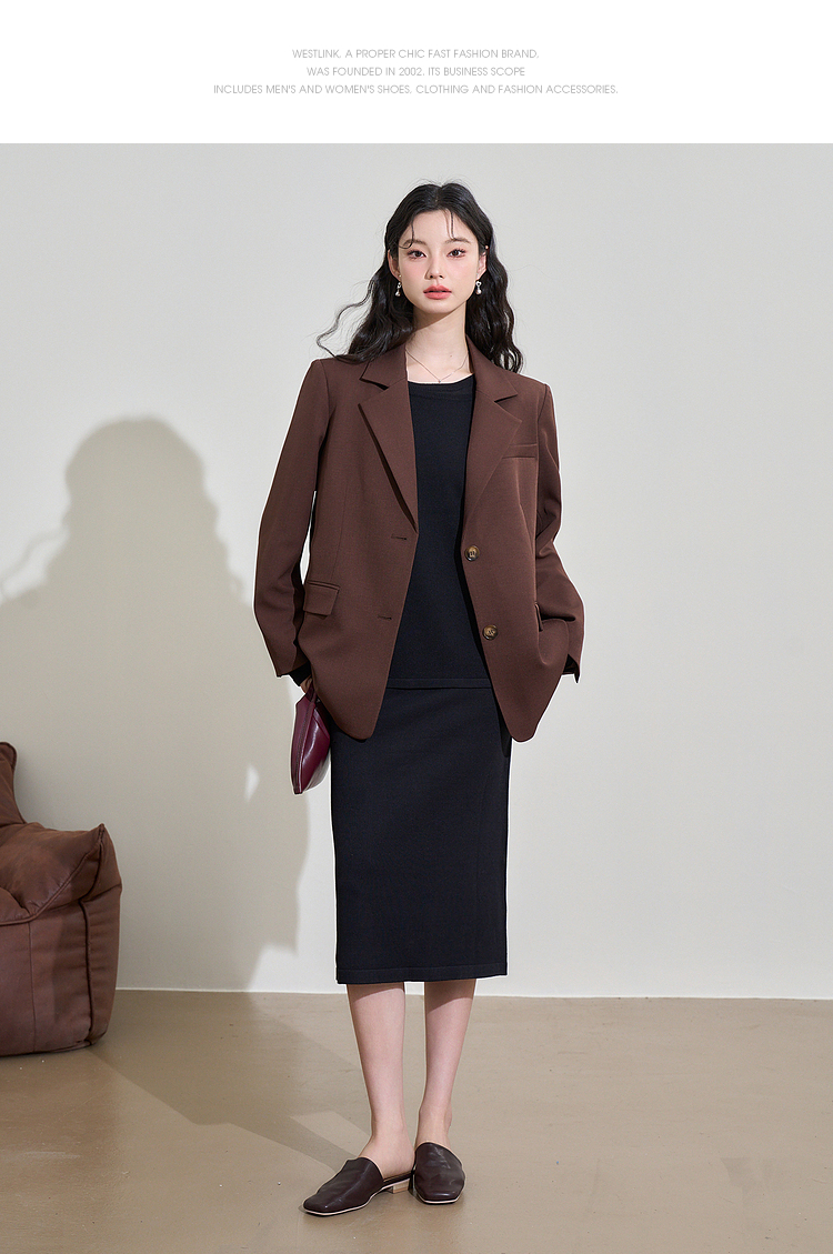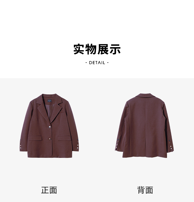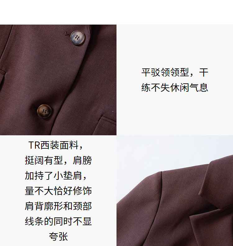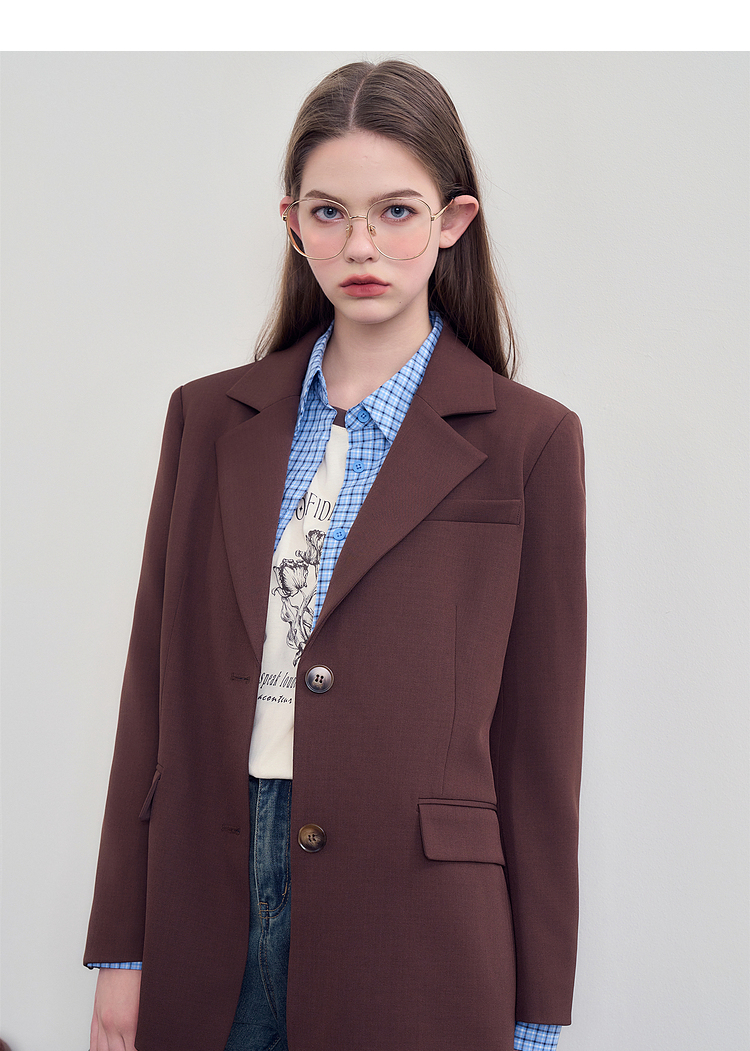 西遇咖色西装外套女新款宽松翻领垫肩正装休闲西服D3342232