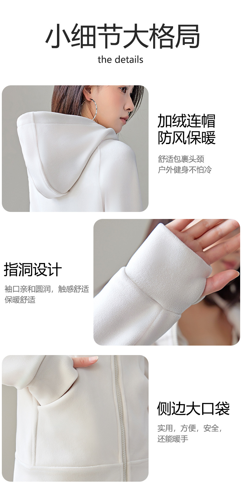 【防风保暖,柔软舒适】秋冬双面加绒 奥利绒 美式小个子拉链开衫外套,百搭时尚。视觉显瘦,连帽设计适合多场景使用。让你感受温暖的同时还能展现出你的时尚品味!