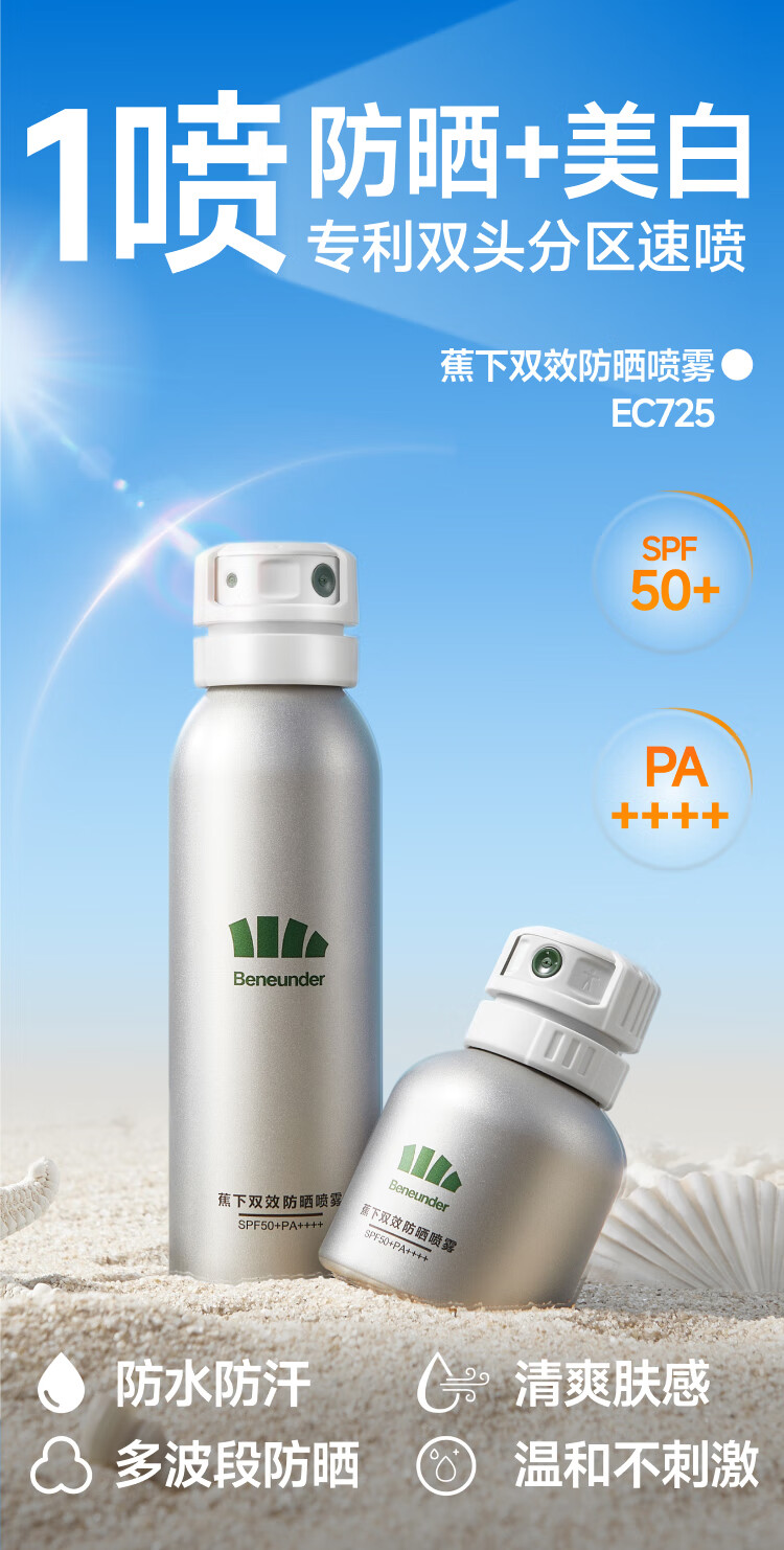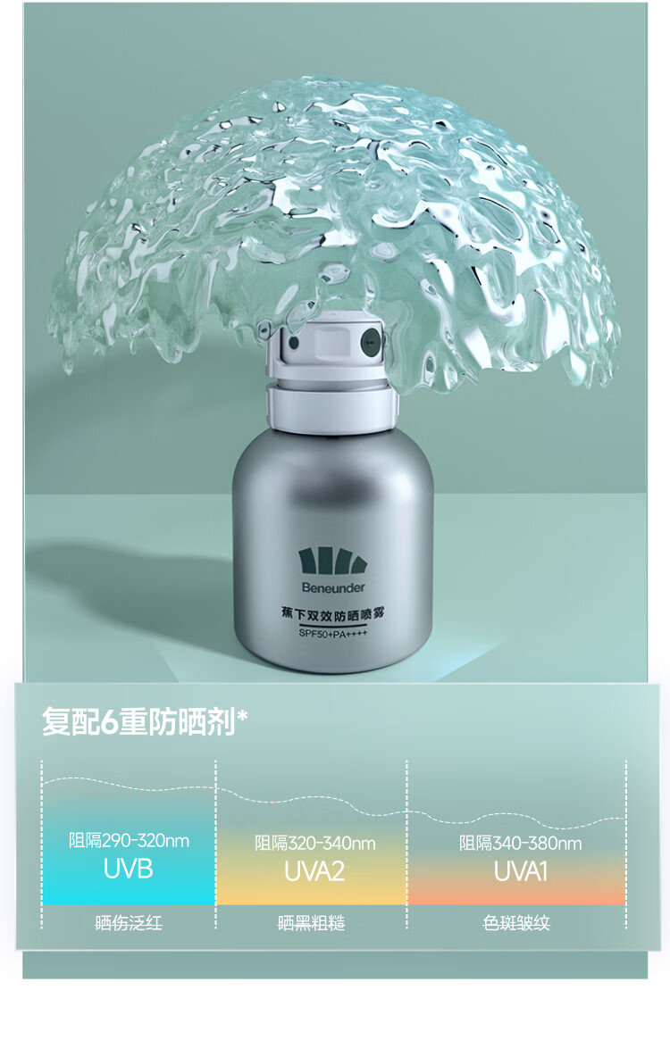 蕉下(beneunder)防晒喷雾双效全身防晒户外男女清爽保湿防水抗光老小银盾