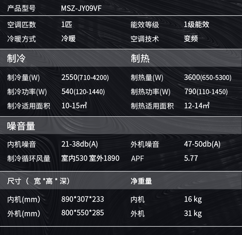 【国补15%】三菱电机空调MSZ-JY12VF 1.5匹一级变频冷暖挂机
