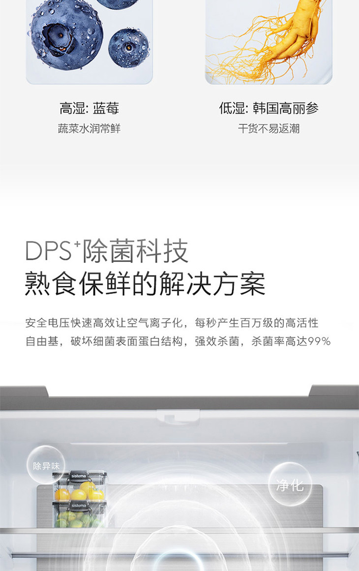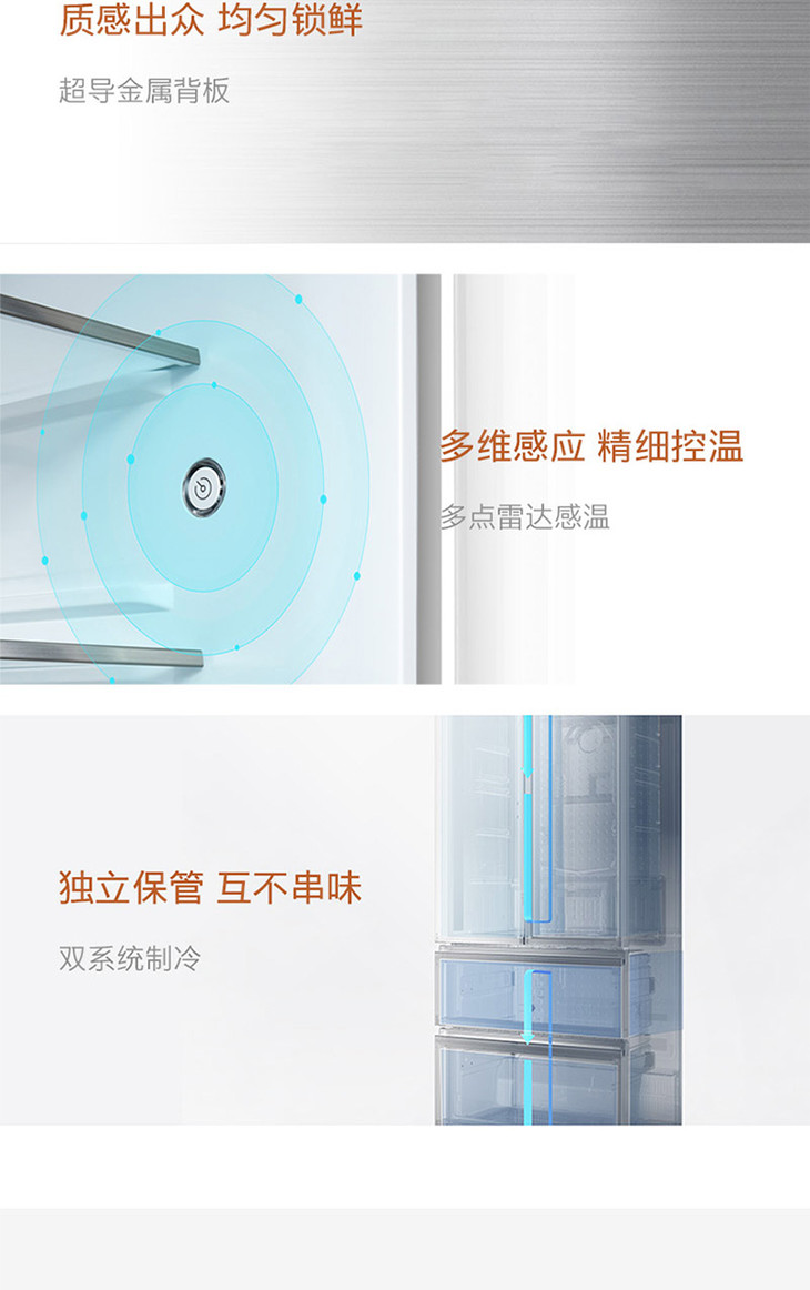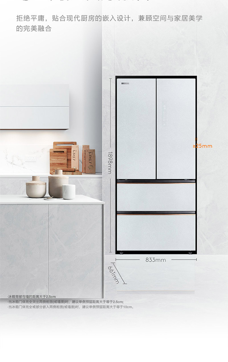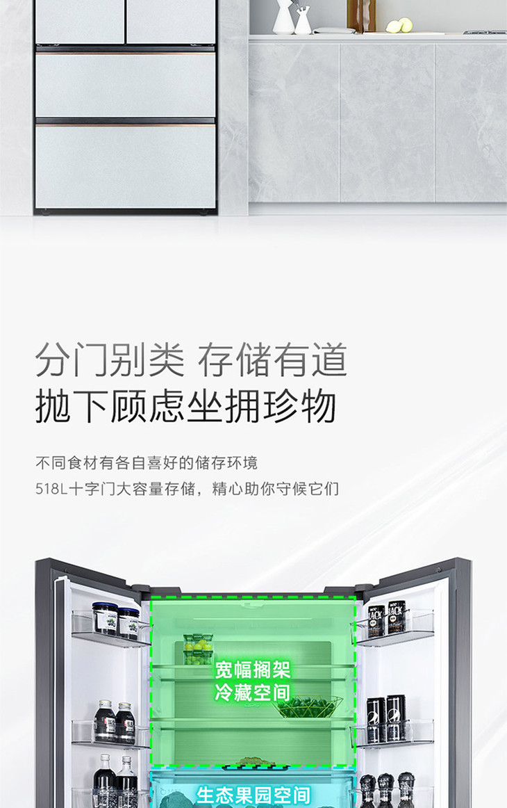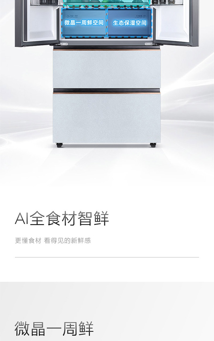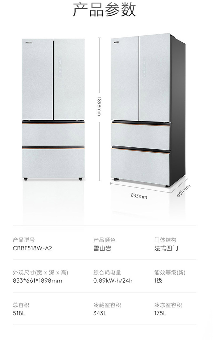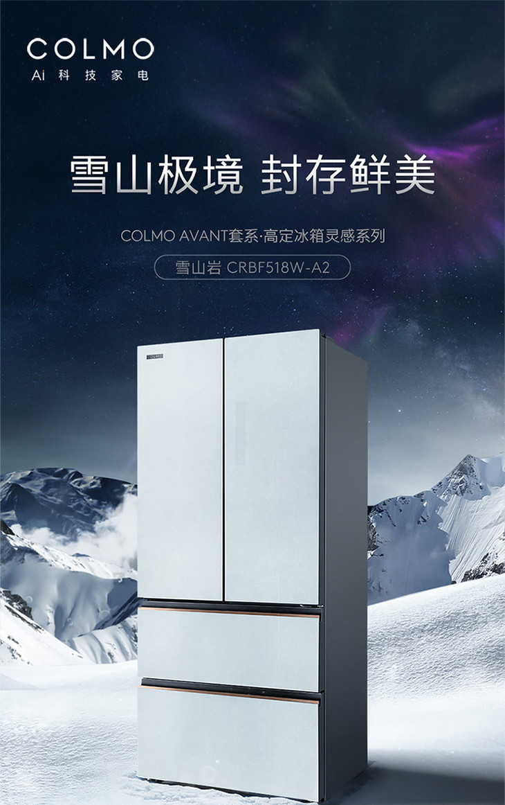 COLMO 518升法式四门电冰箱 变频智能 风冷无霜 大容量家用微晶一周鲜CRBF518W-A2