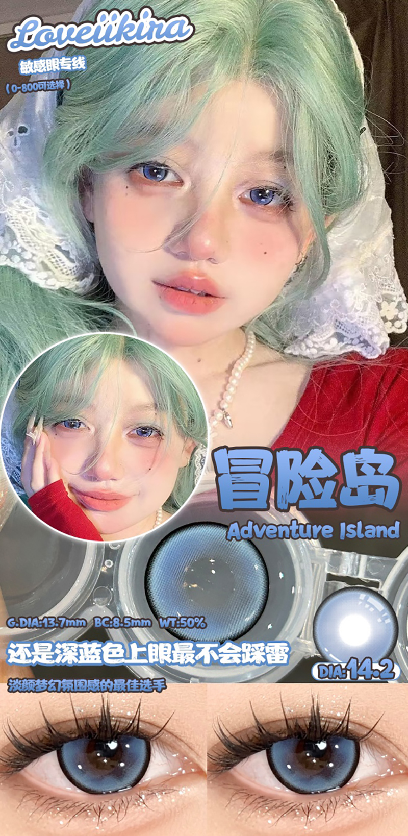 艾吉拉Loveiikira 冒险岛 日抛 十片 14.2mm 参考着色13.7mm 基弧8.5 含水50% 新锐国货