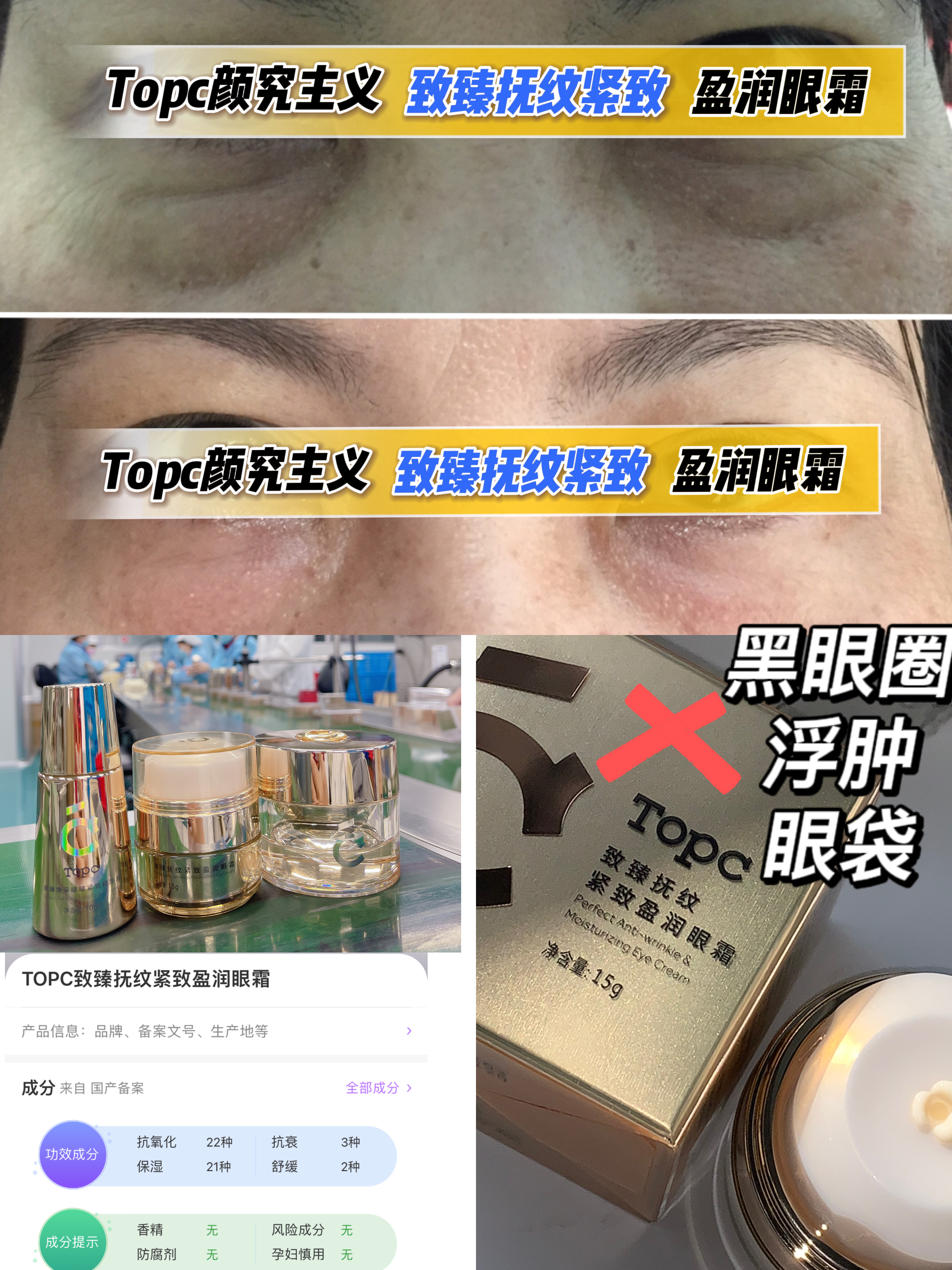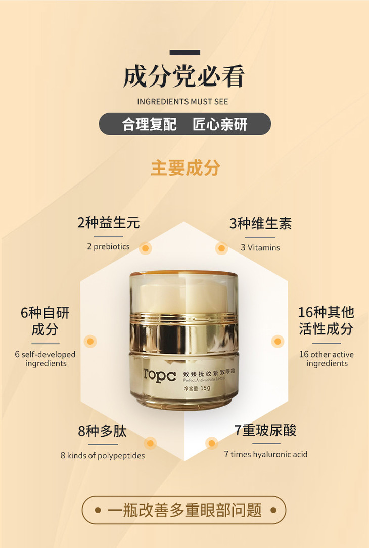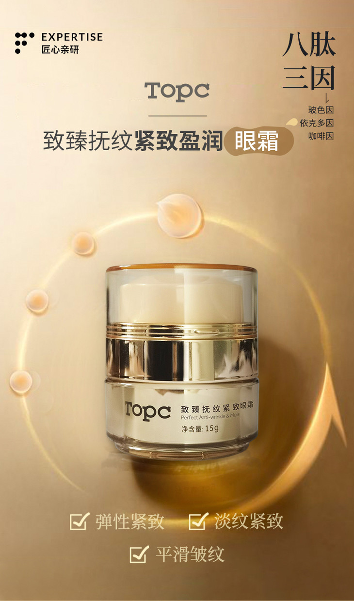 Topc抚纹紧致盈润眼霜18g *4,抗衰独特技术,淡化消除各种纹纹路路 含有多种肽以及玻色因等高效成分!元旦特惠活动!